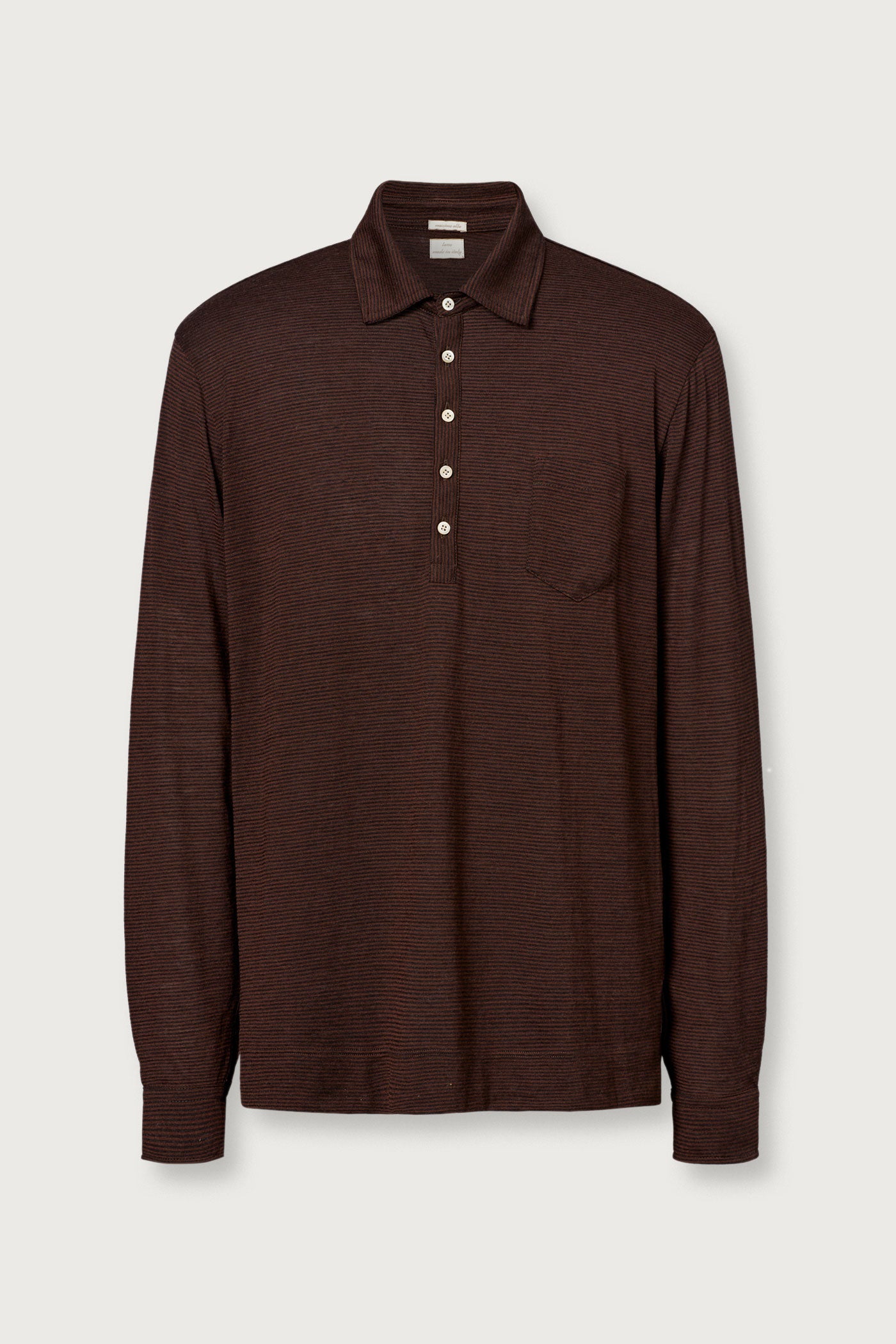 Long-sleeved polo shirt with shirt-style cuffs, deep opening with five mother-of-pearl buttons and a regular fit. Crafted from wool. Made in Italy.