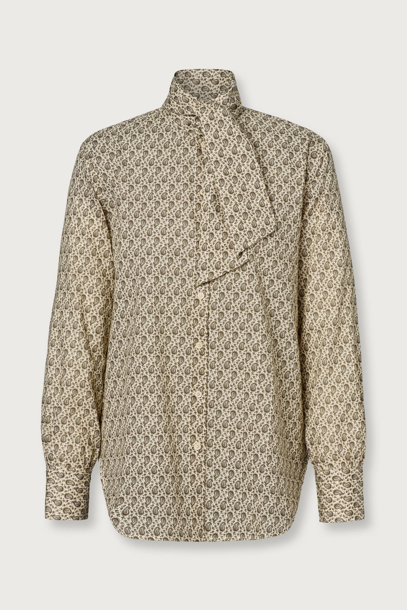 Blouse with bow tie, shirt-style cuffs and mother-of-pearl buttons. Crafted from cotton-cashmere in an exclusive print. Made in Italy.