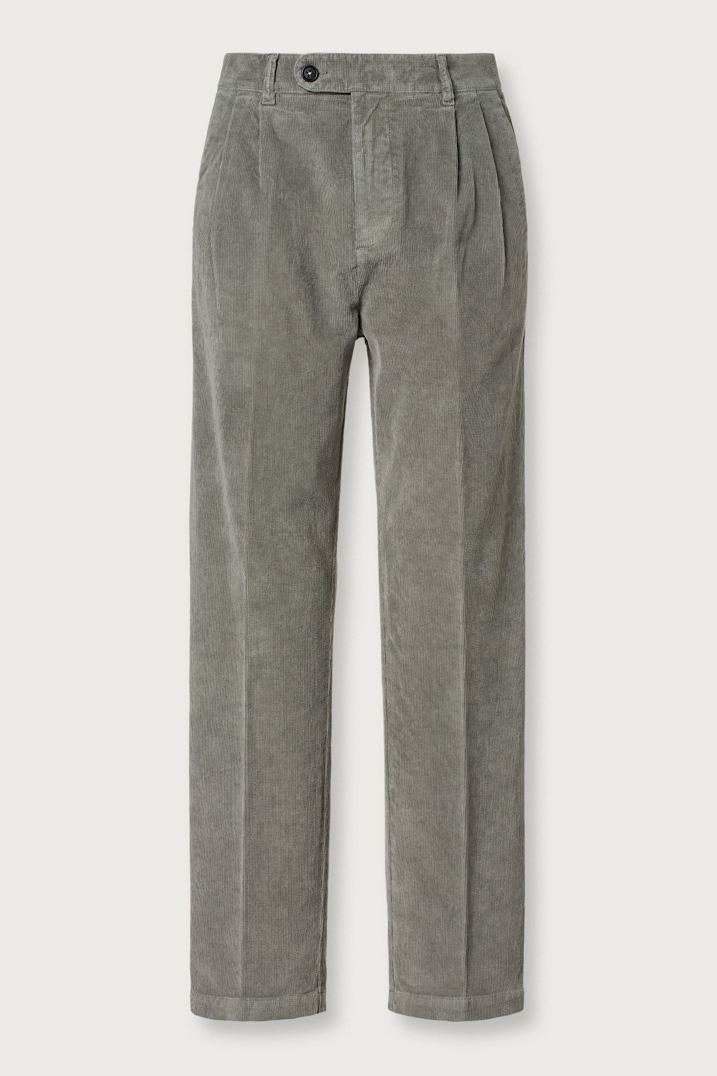 Relaxed-fit trousers with a tab waistband, double pleats and slanted side pockets. Crafted from cotton velvet. Made in Italy.