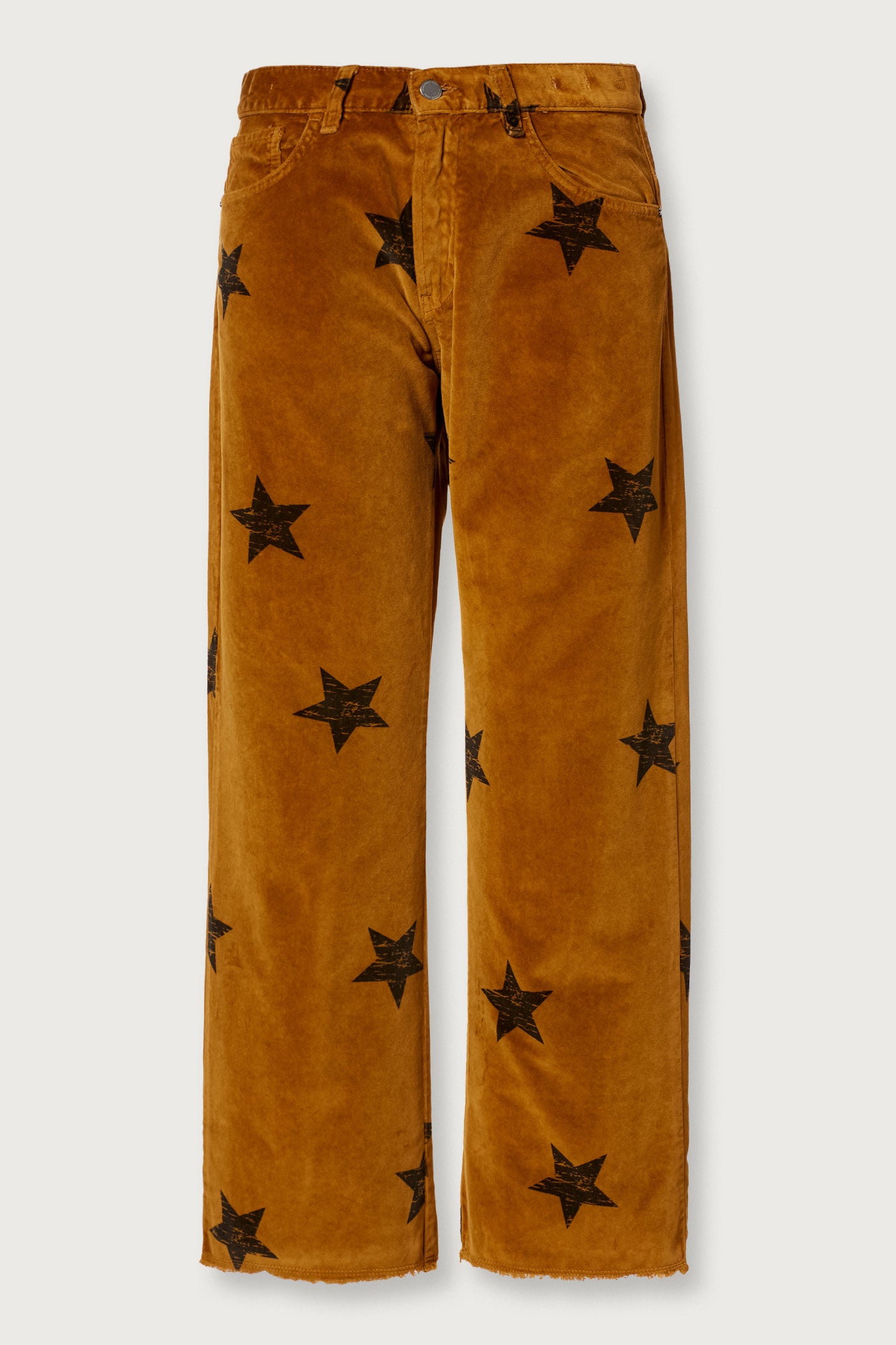 Five-pocket pants, straight leg, cropped at the ankle with frayed hem, relaxed fit, zip and button closure, made of printed pure cotton velvet. Made in Italy.