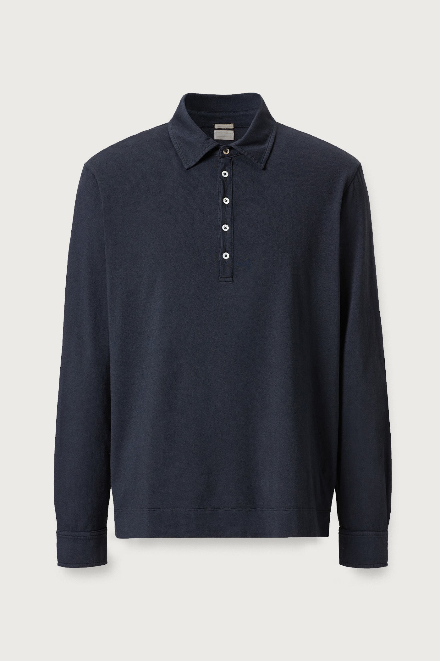 Regular-fit 5-button long-sleeve polo shirt in lightweight cotton cashmere jersey with a chest pocket and shirt cuffs. Made in Italy.