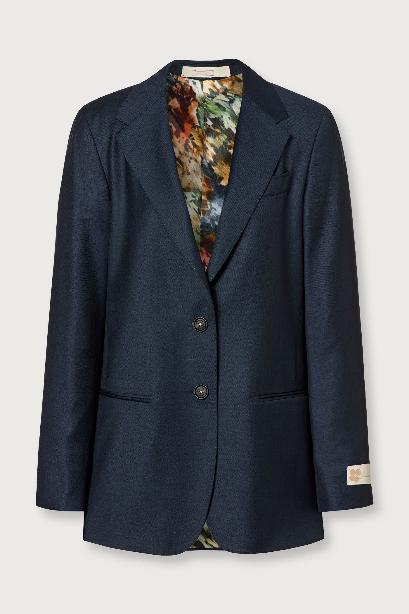 Single-breasted jacket with constructed and lined shoulders in exclusive pattern, featuring welt pockets, lance lapels, two genuine horn buttons, made of two-tone iridescent twill in virgin wool. Made in Italy.