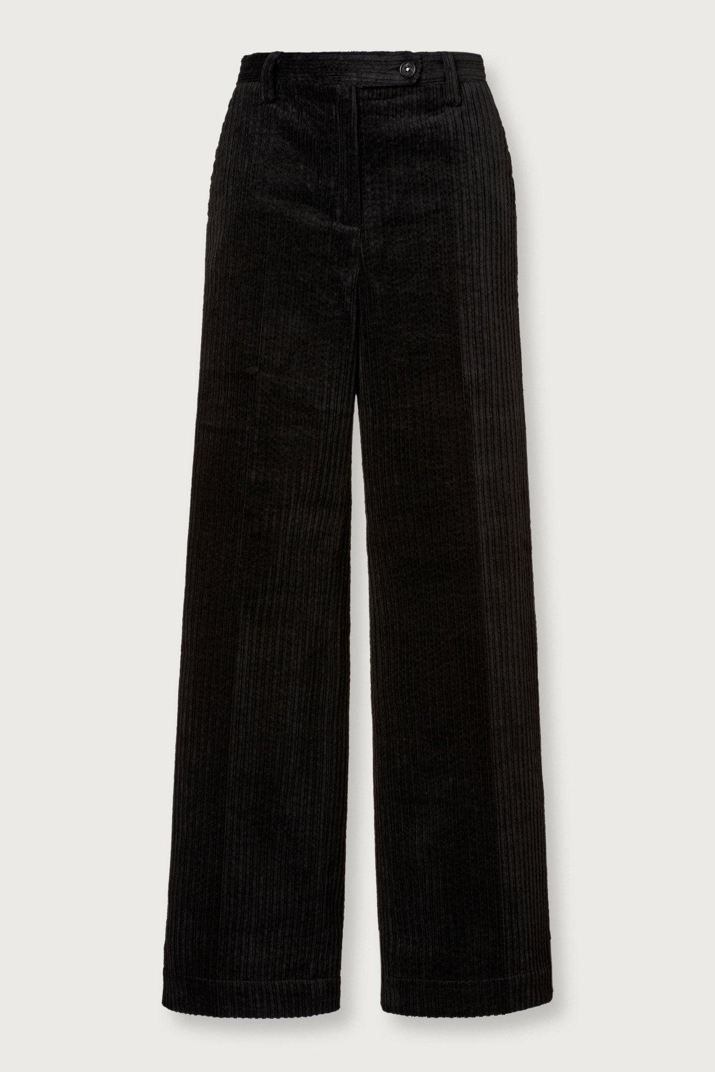 Drop-crotch, wide-leg trousers featuring a front button closure, welt pockets, and buttoned back pockets. Made from stretch cotton corduroy. Made in Italy.