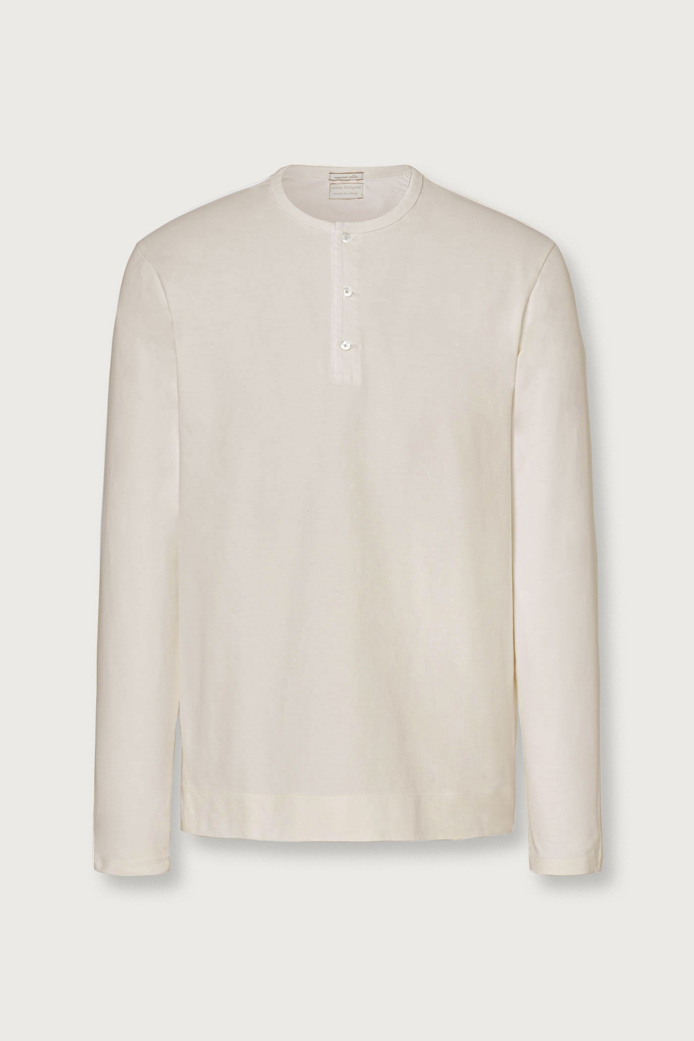 Long-sleeved T-shirt with band collar, partial opening with three mother-of-pearl buttons and a regular fit. Crafted from cotton-cashmere jersey. Made in Italy.