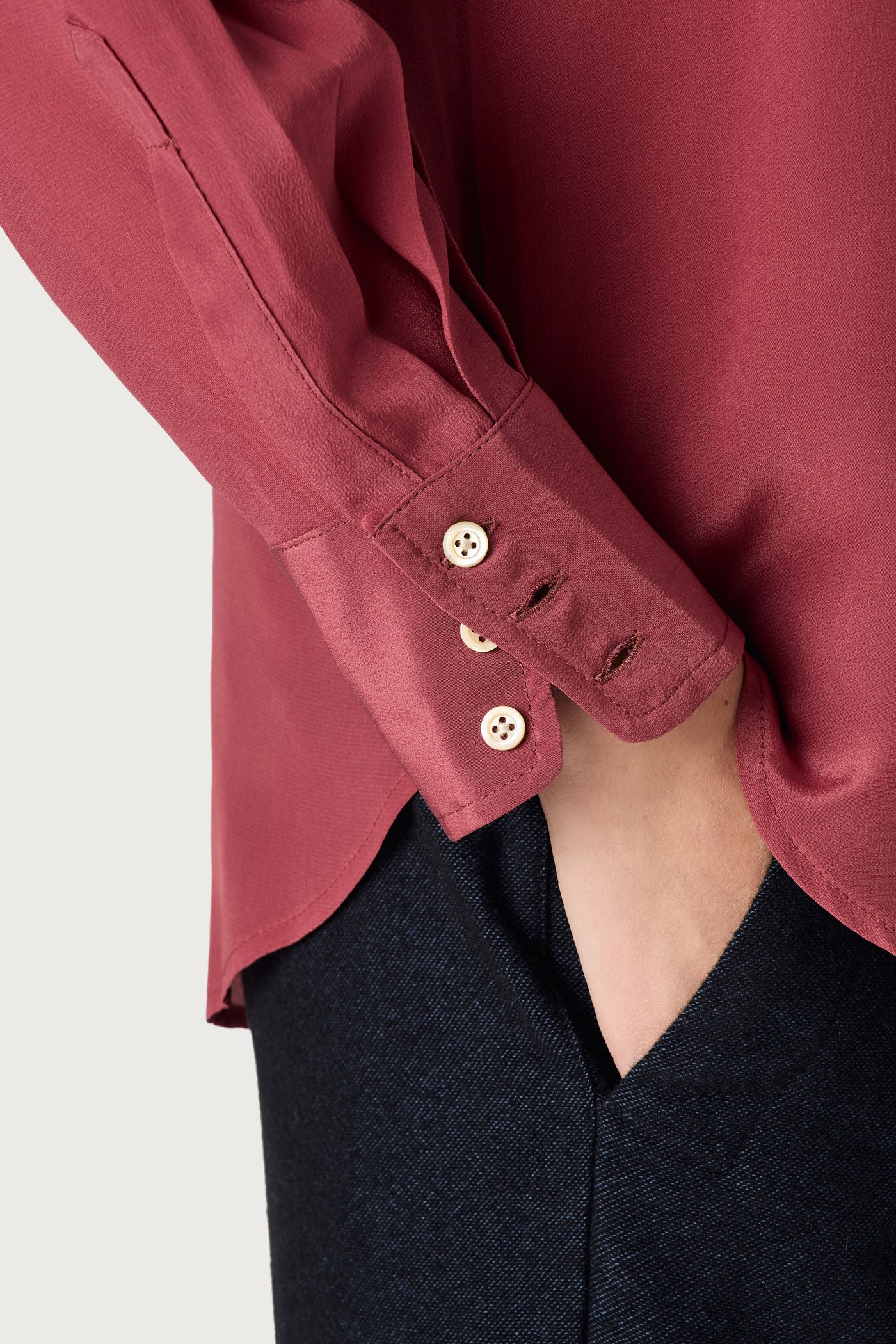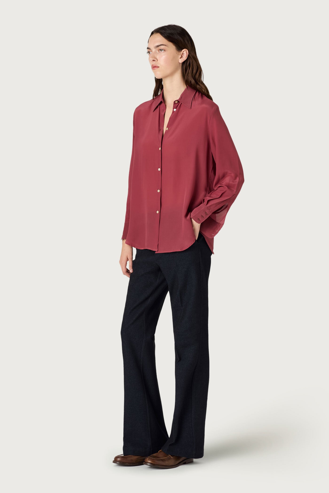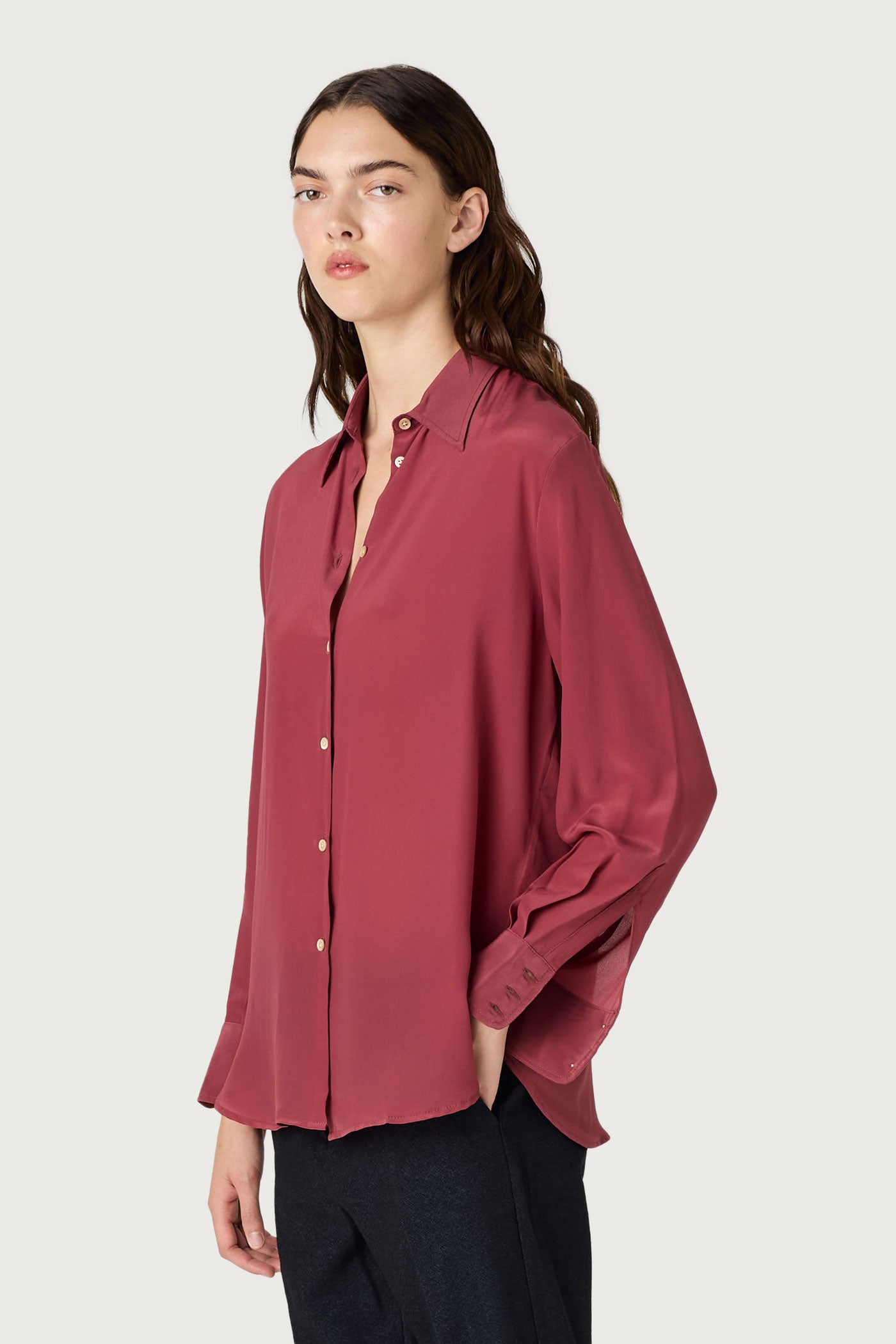 Shirt with pointed collar, relaxed fit, pointed yoke, without front placket, made of crepe de chine. Made in Italy.