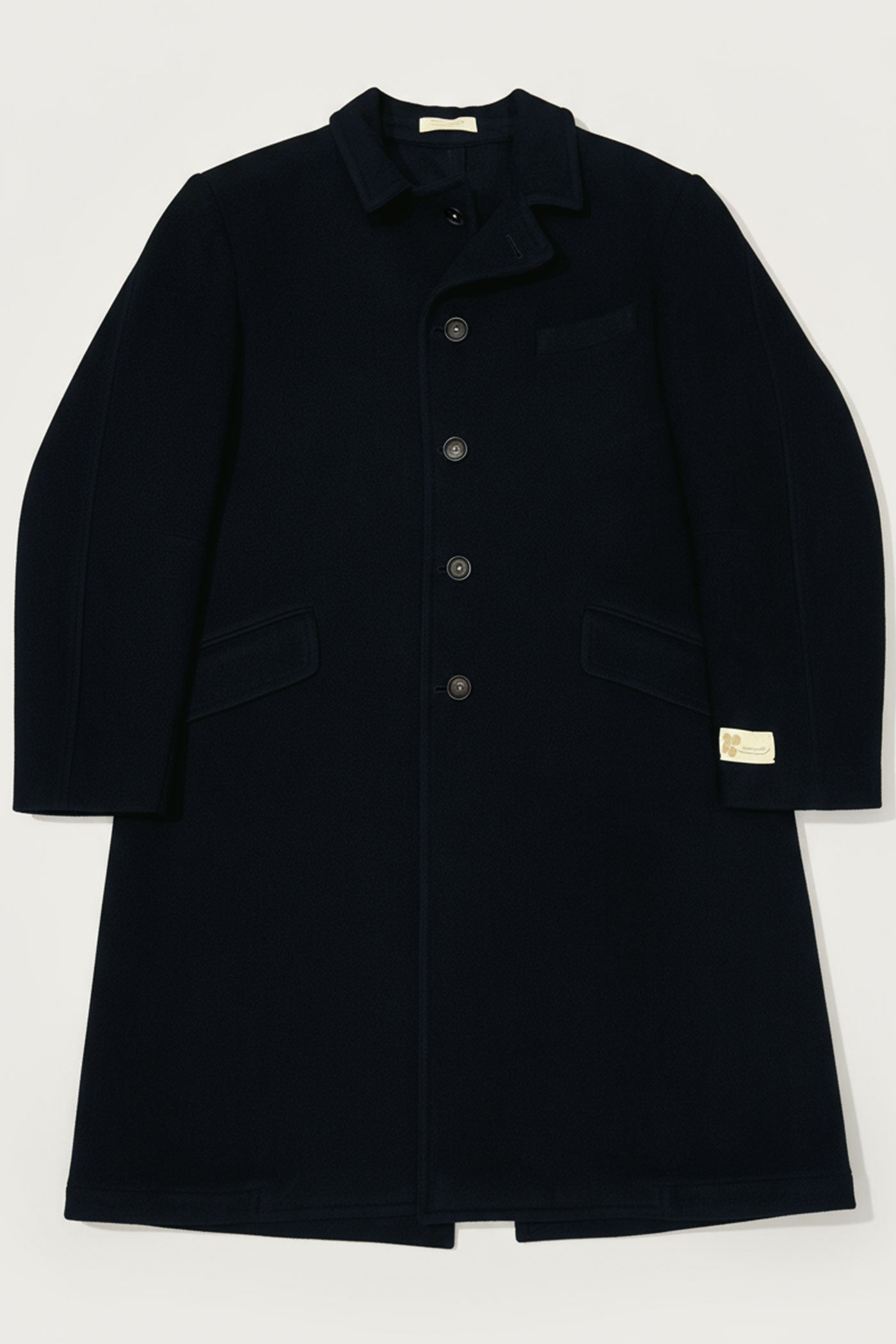 A regular fit single-breasted coat with horn buttons and slanted pockets, crafted from soft pure wool. Made in Italy.