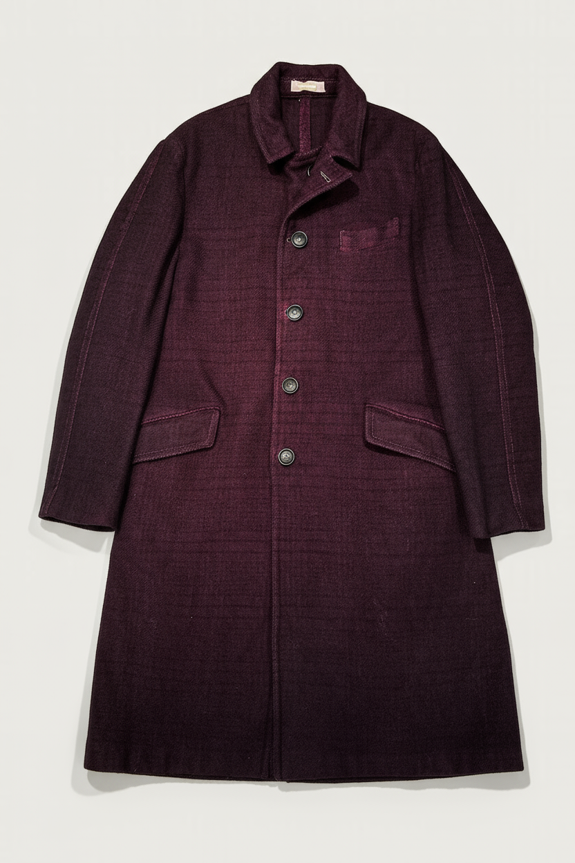 A regular fit single-breasted coat with horn buttons and slanted pockets, crafted from soft pure wool. Made in Italy.
