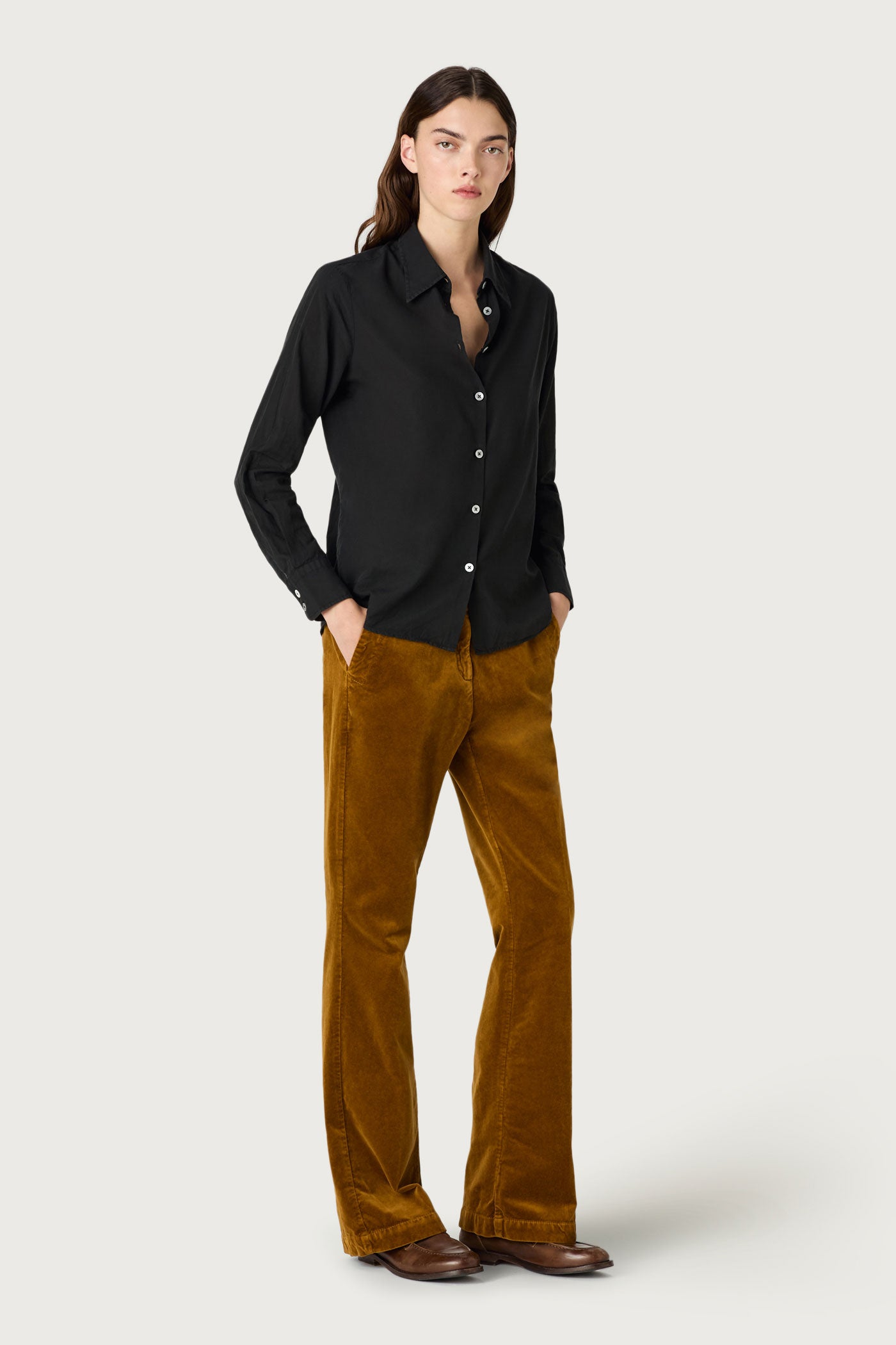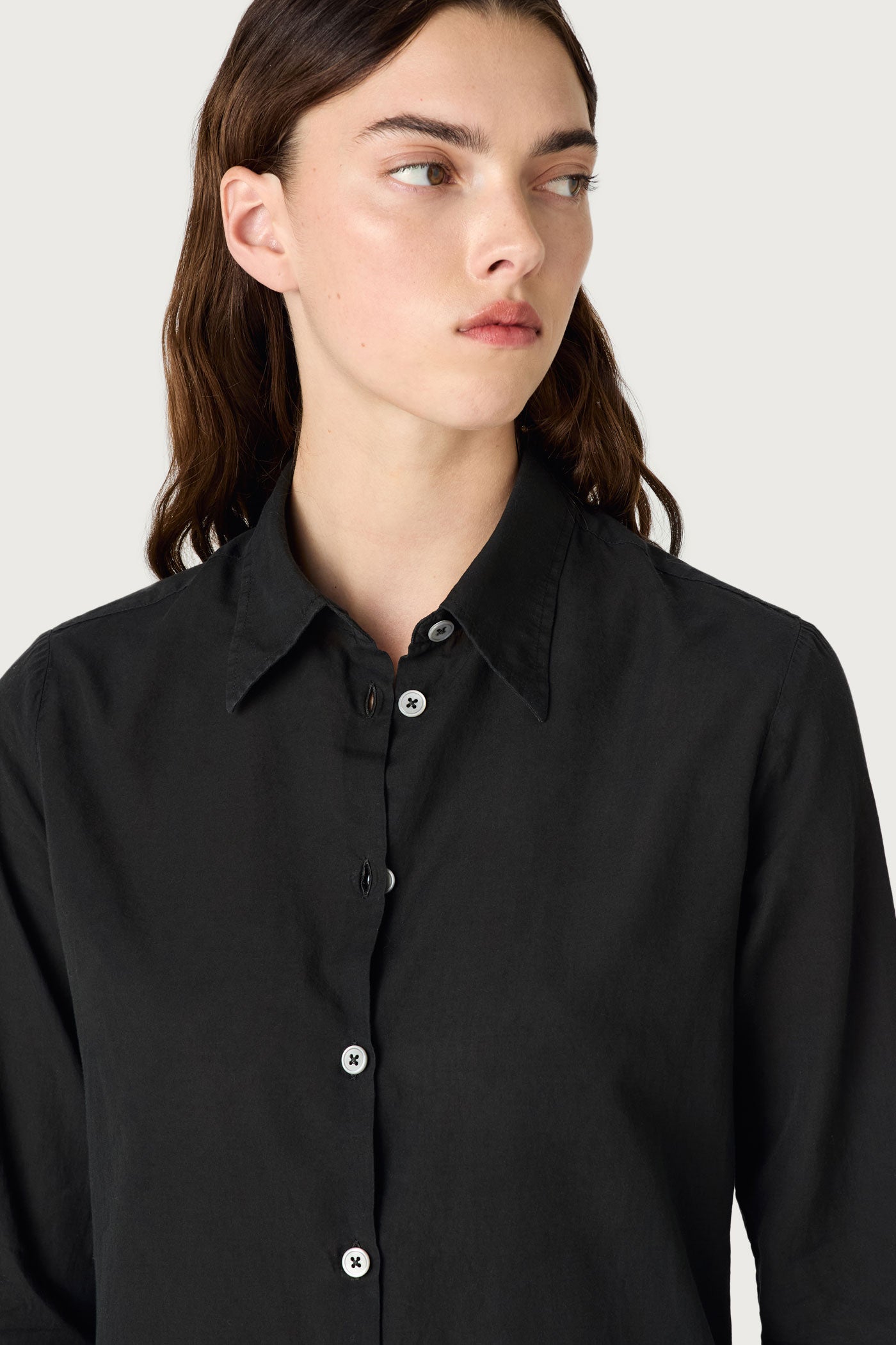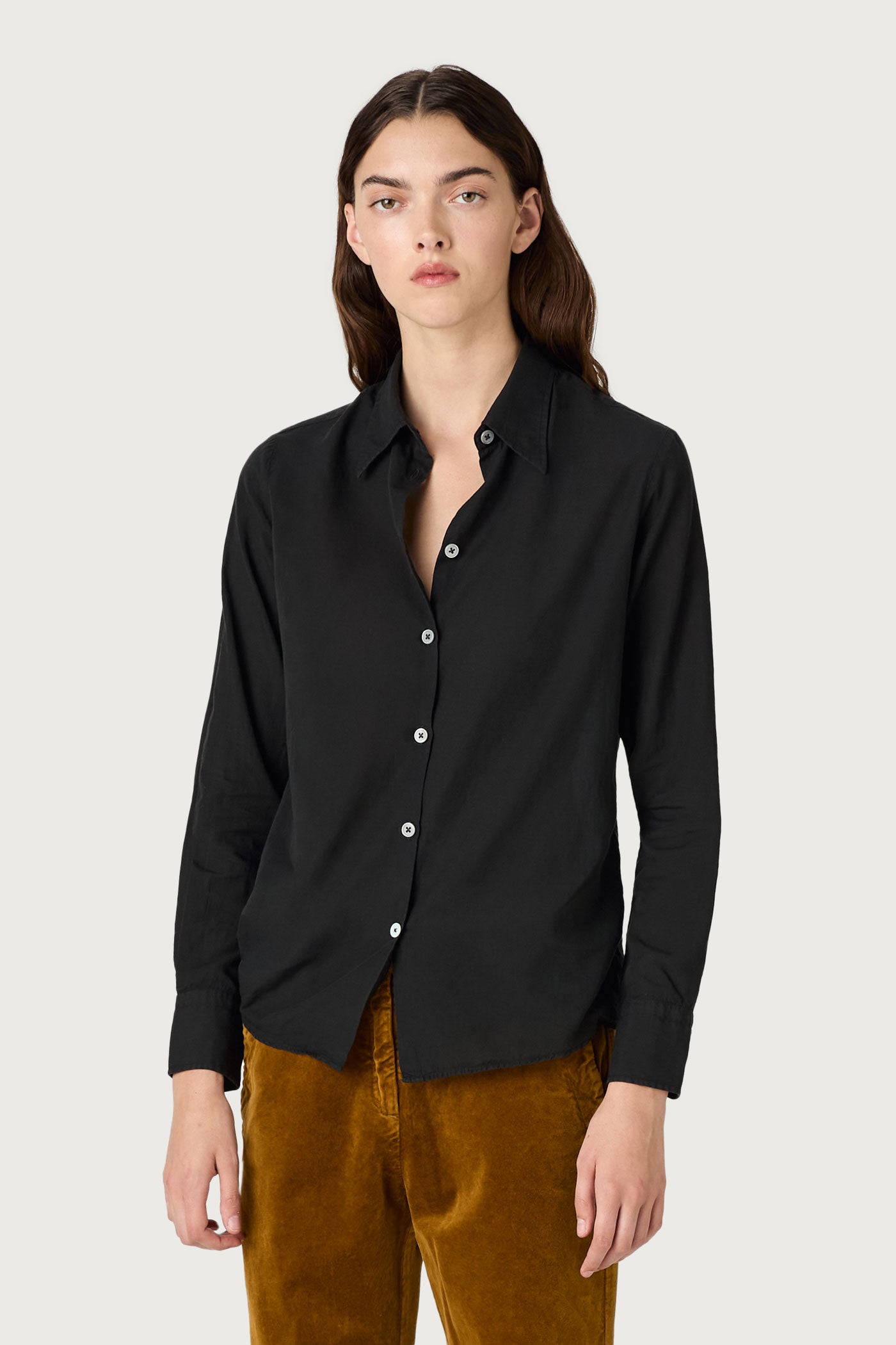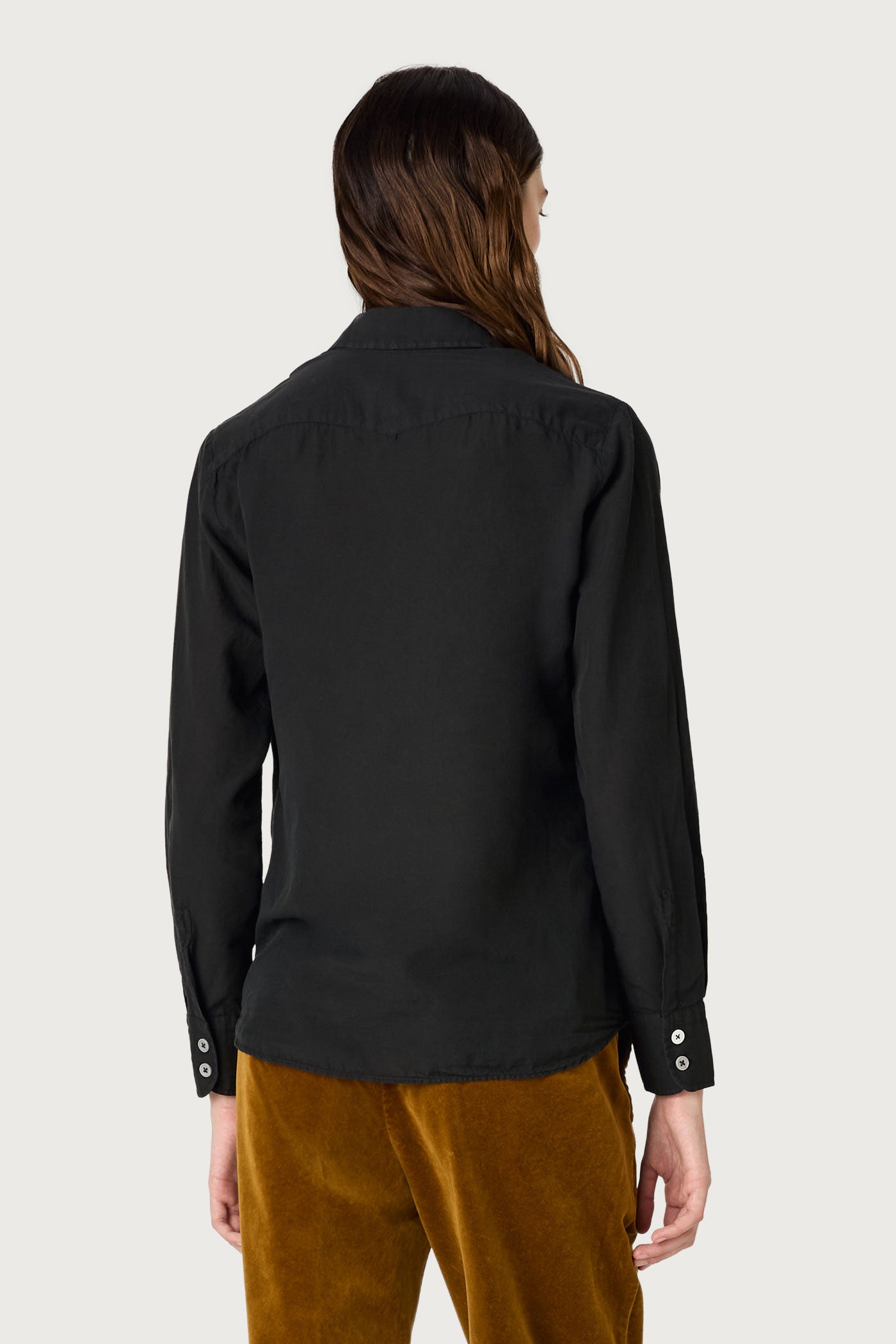 Shirt with pointed collar, classic fit, pointed yoke, without front placket, made of printed cashmere cotton voile. Made in Italy.