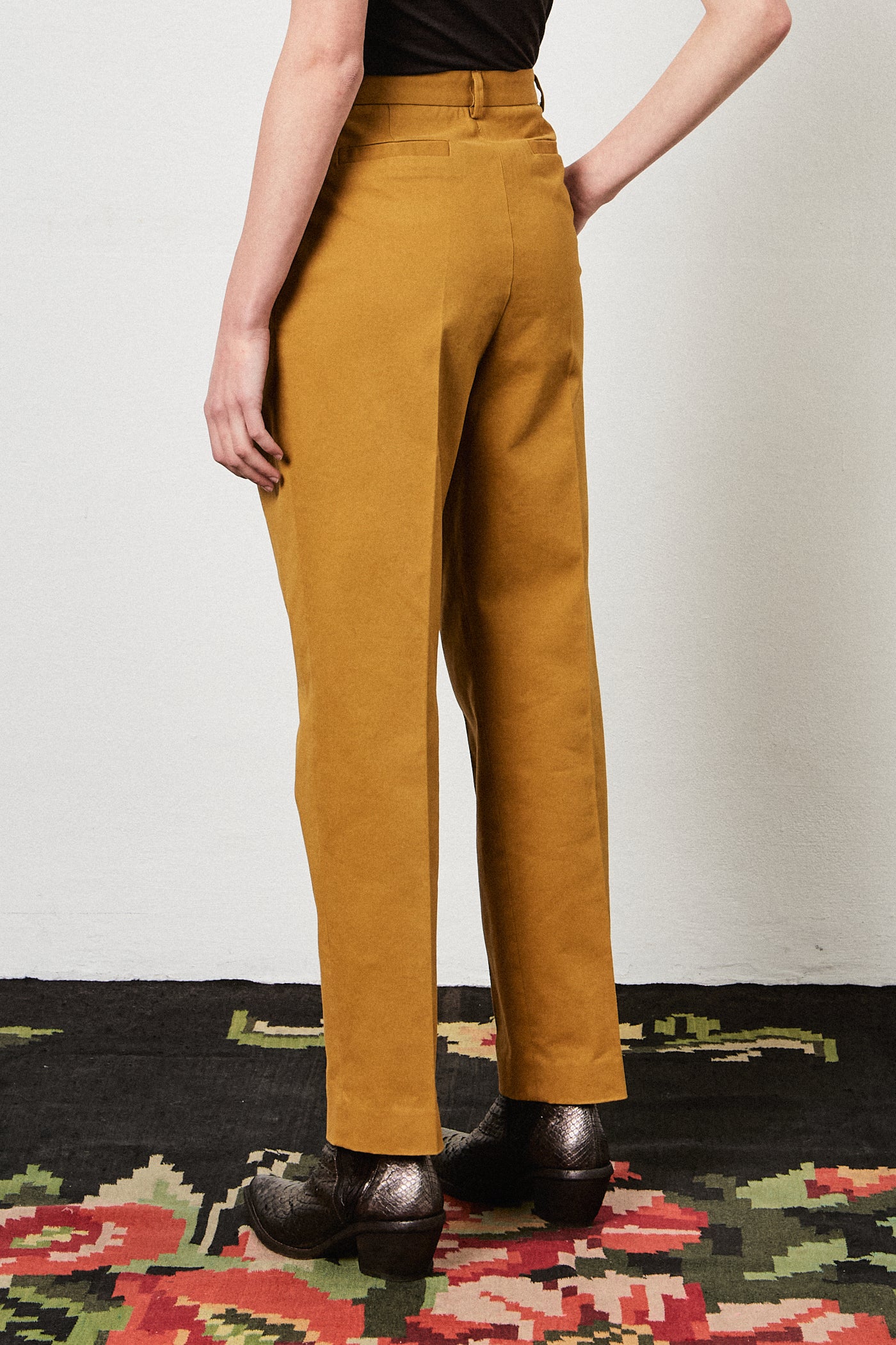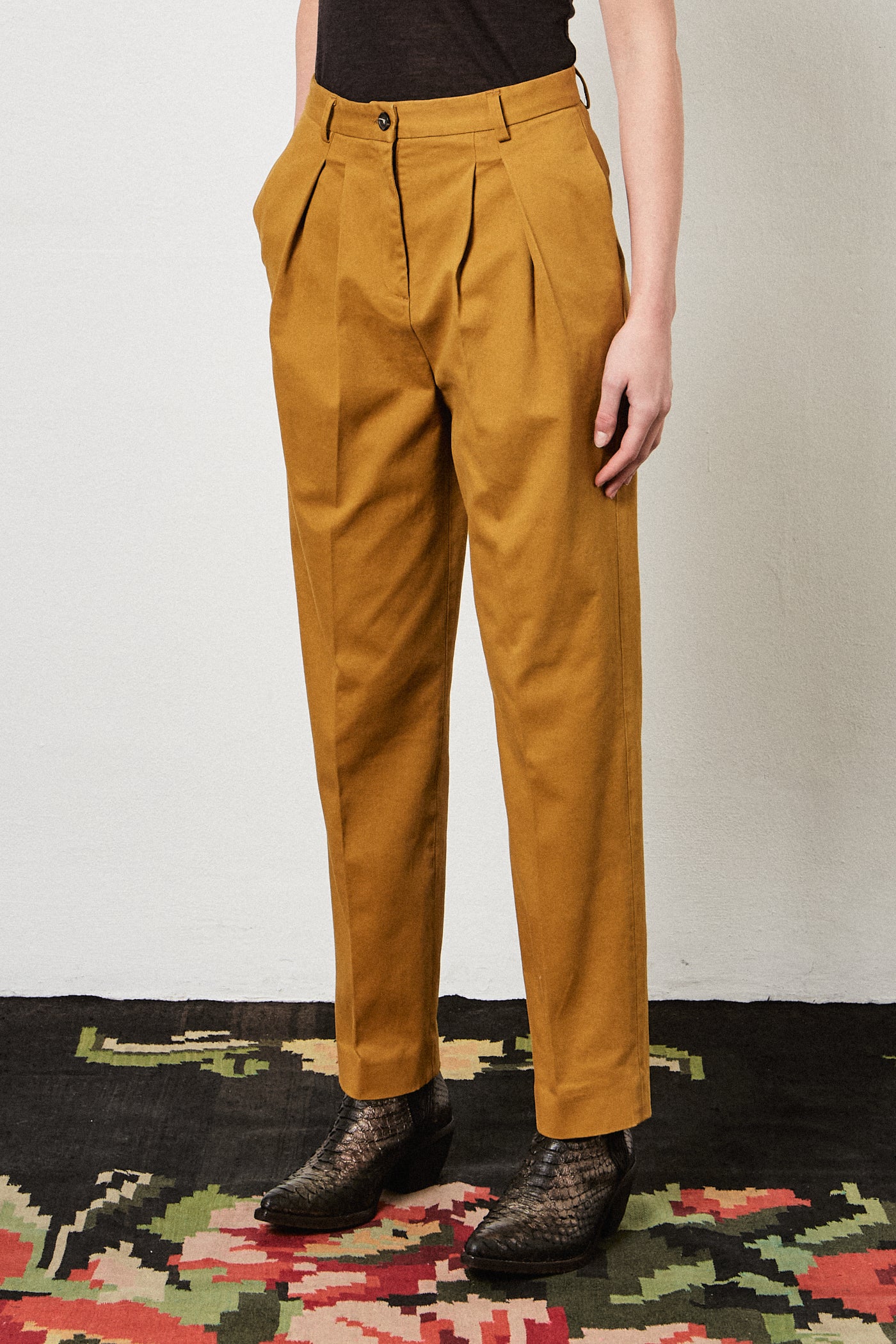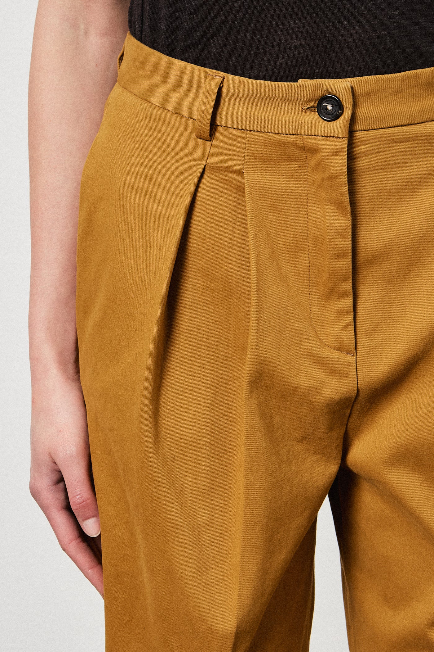 High-waist pants with comfort fit, double pleats, zip and horn button closure, made of comfort cotton. Made in Italy.