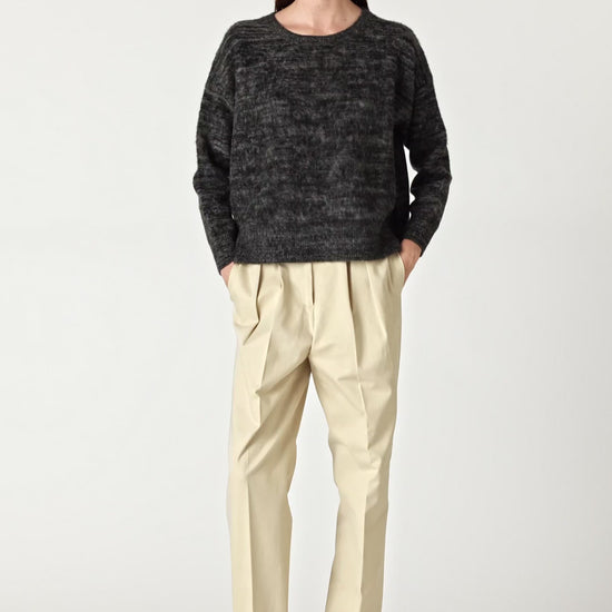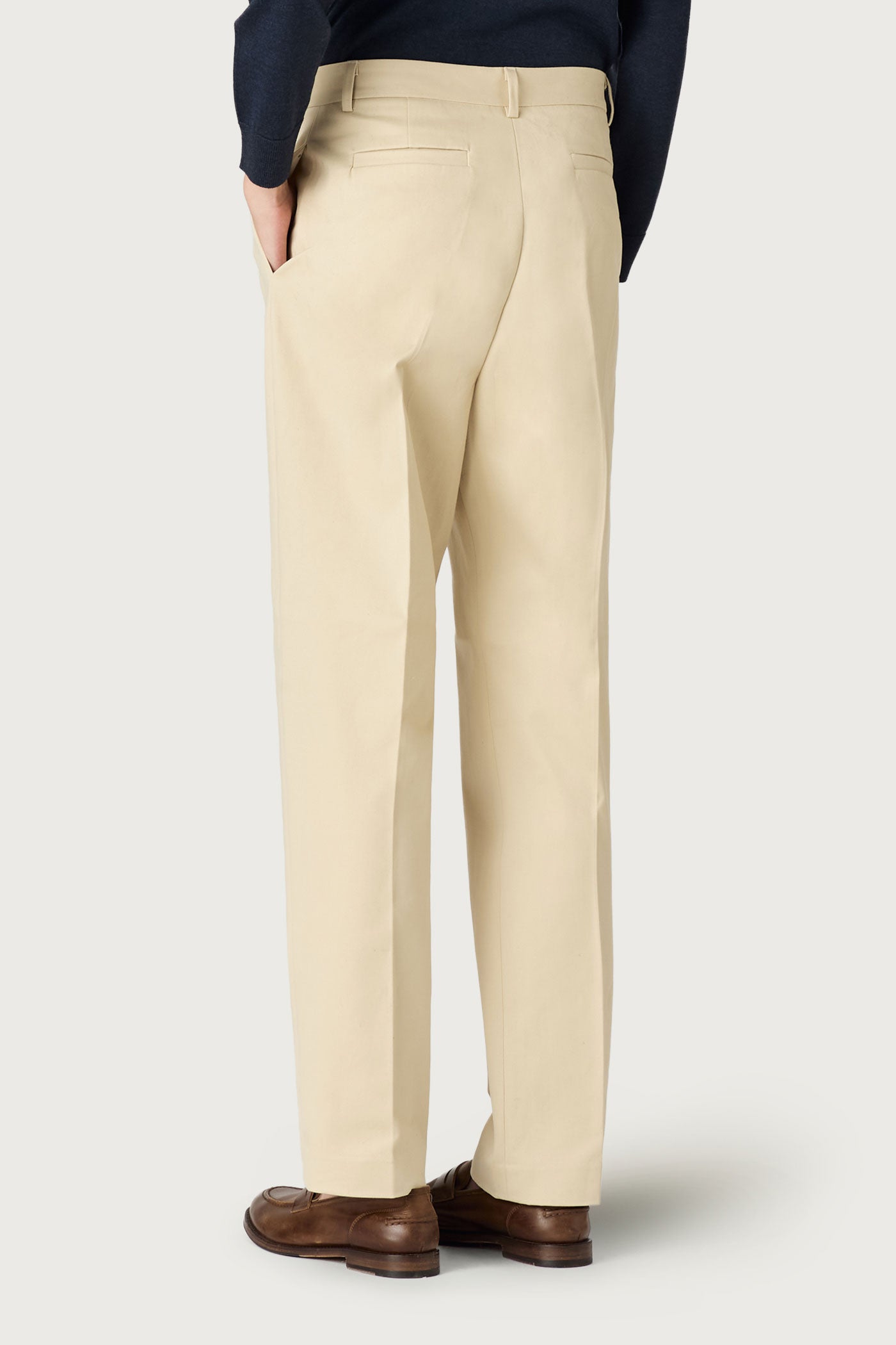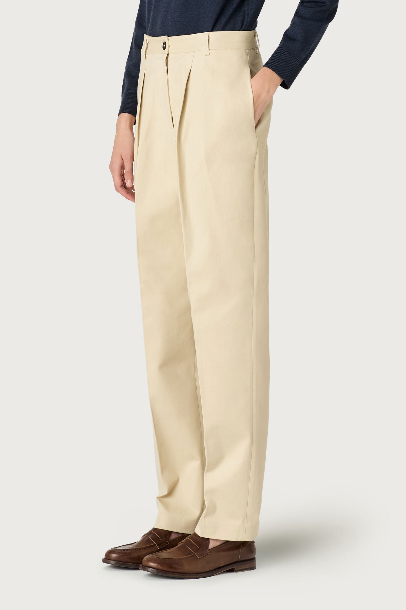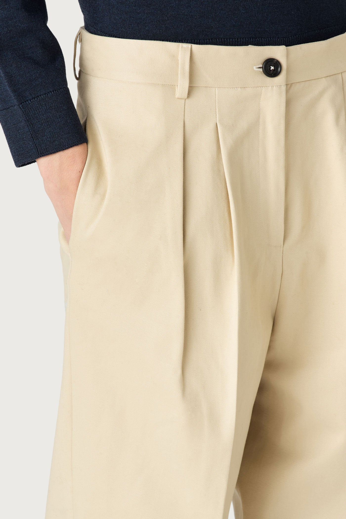 High-waist pants with comfort fit, double pleats, zip and horn button closure, made of comfort cotton. Made in Italy.