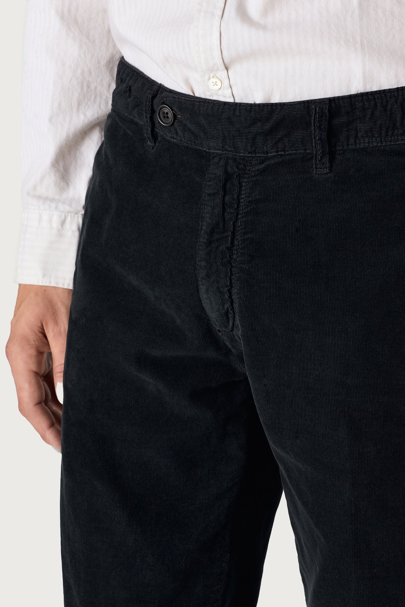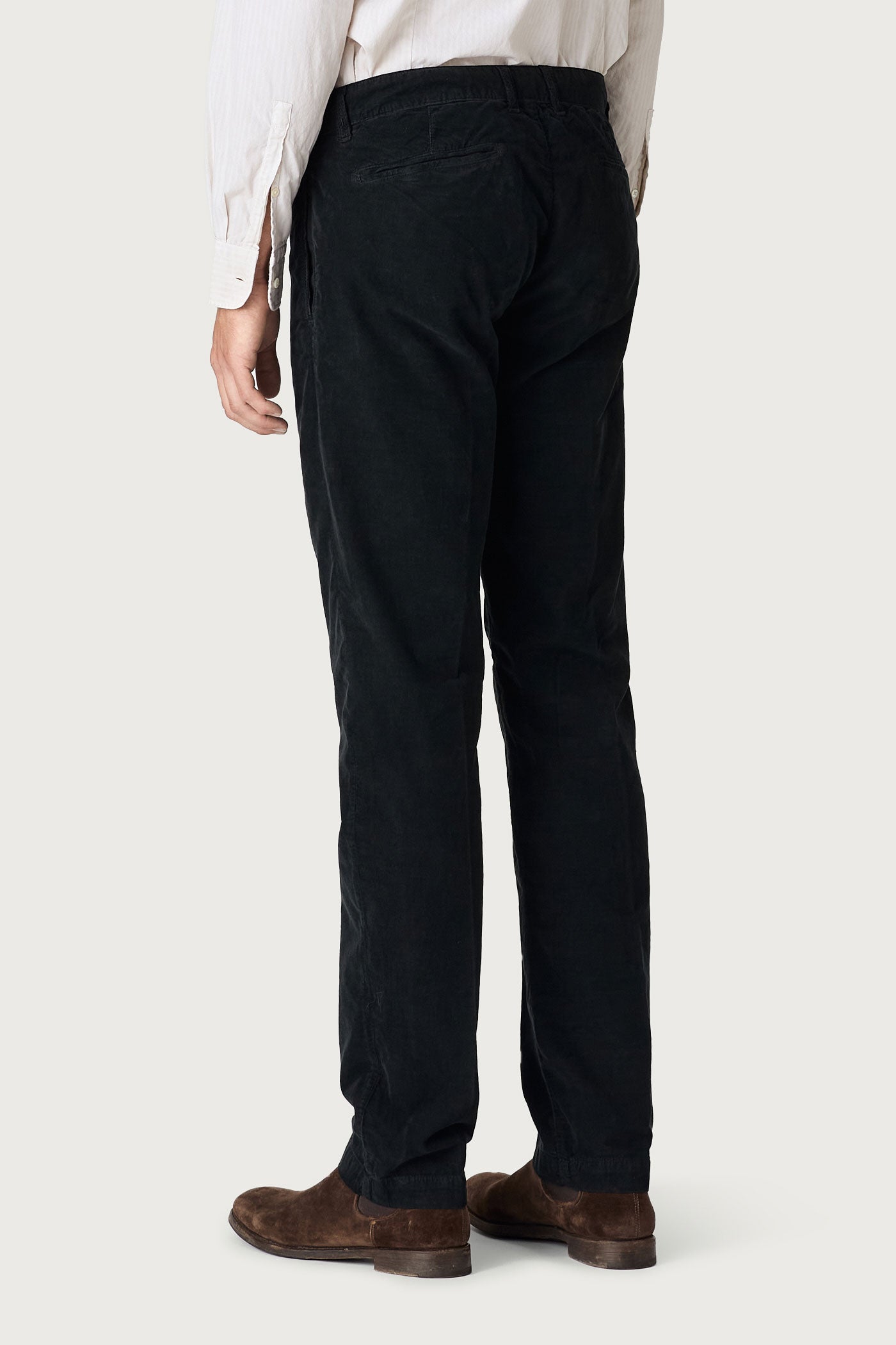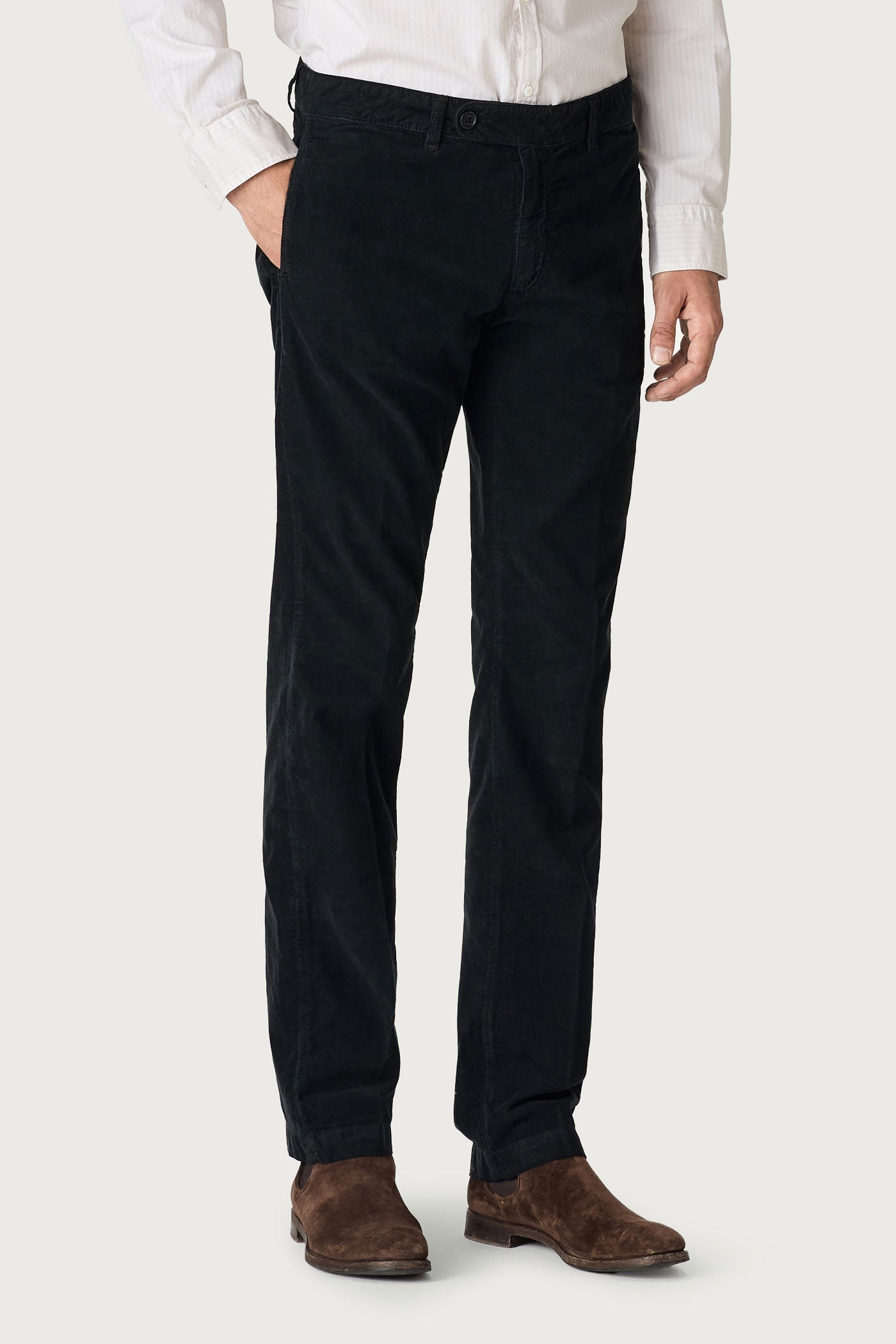 Regular/slim fit flat front trousers with a tab-button closure and zip, rear fillet pockets, and a 19cm leg opening. Crafted from cotton baby corduroy. Made in Italy.