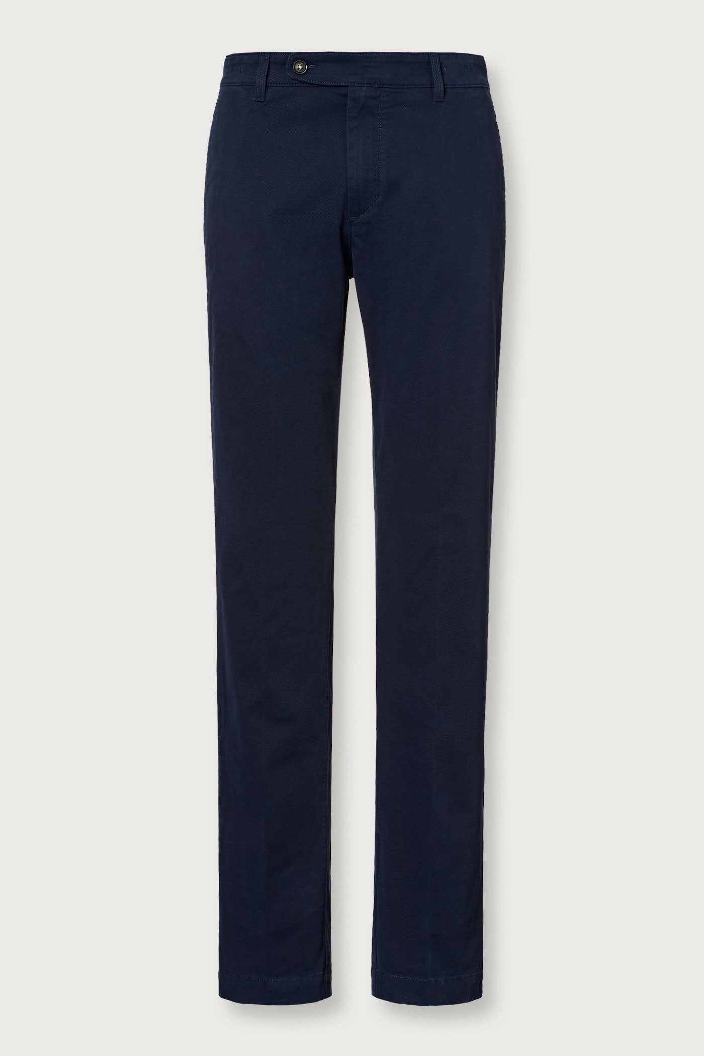 Regular-rise trousers with a flat front and classic fit, featuring a tab, button and zip closure. Finished with welt pockets at the front and back, and a 19 cm leg opening. Crafted from cotton gabardine with a peach-skin finish. Made in Italy.