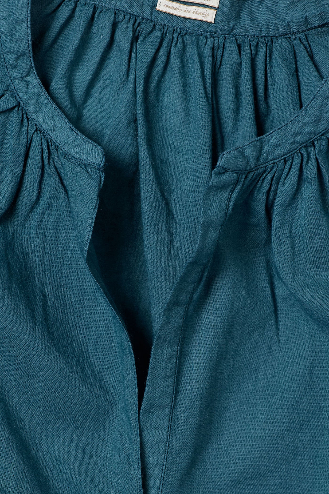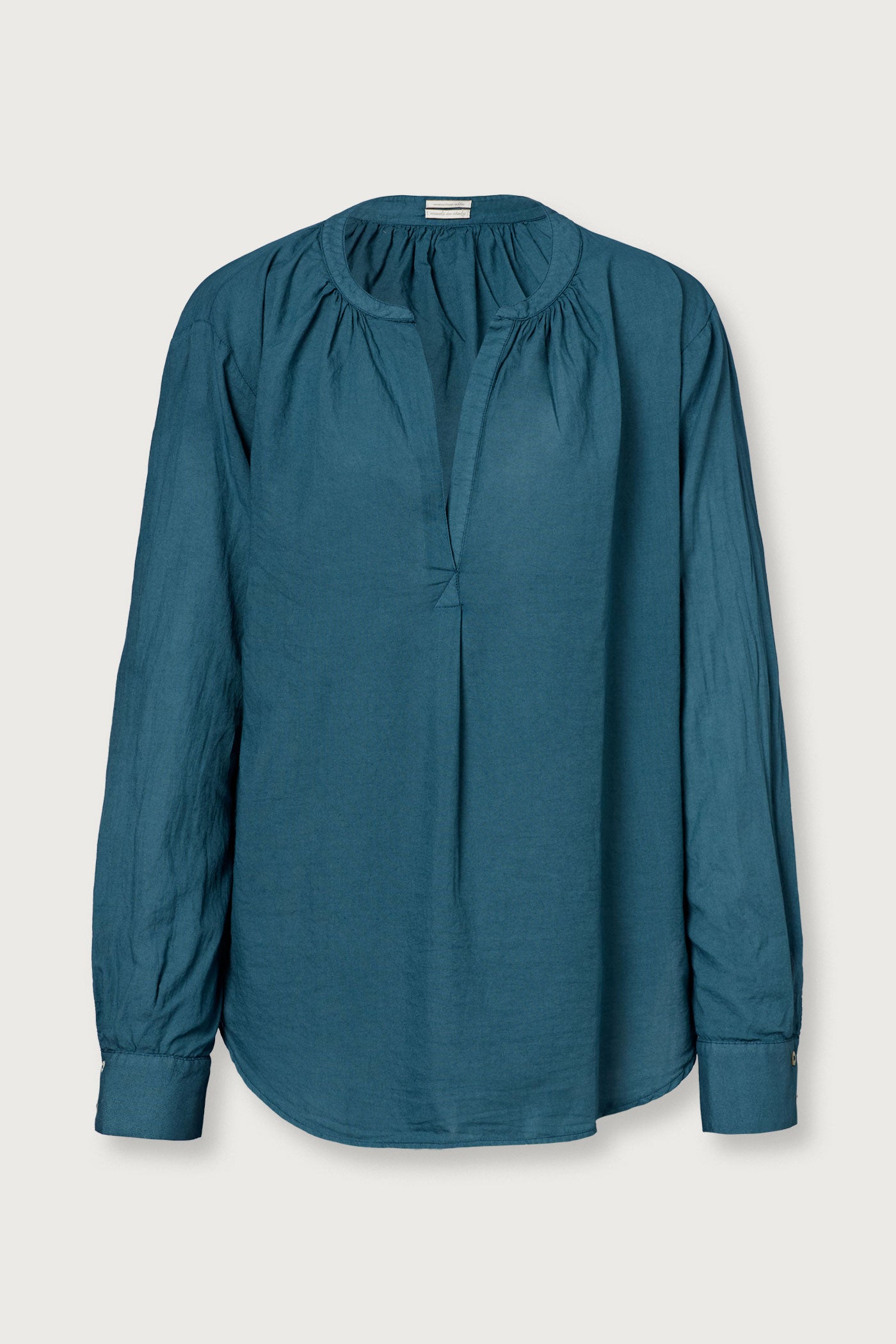Blouse with mandarin collar, deep opening and high cuffs. Crafted from cotton-cashmere with a watercolor effect. Made in Italy.