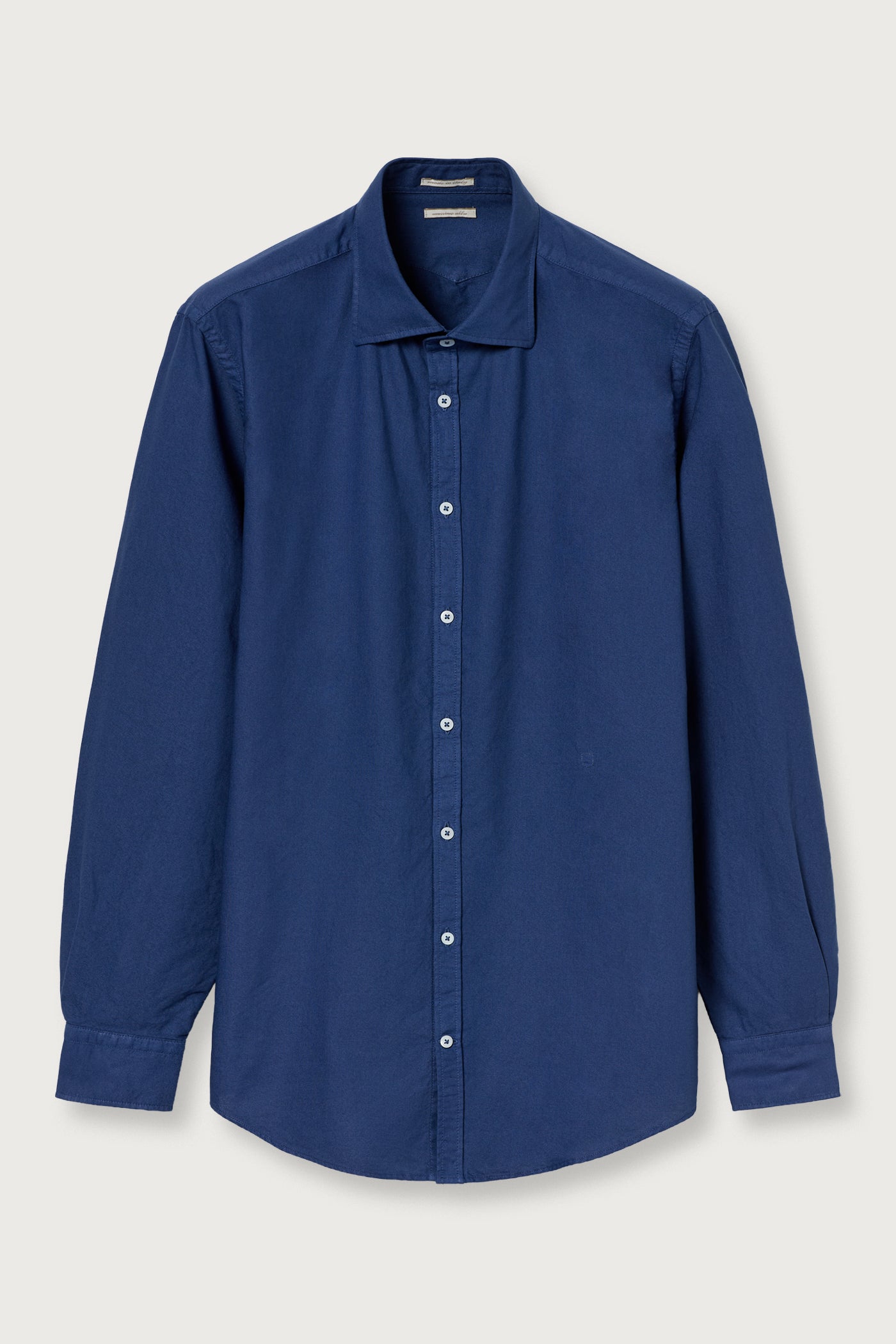 Camicia con colletto a punta, chiusura frontale, dettaglio di pettorina in voile di cotone, stemma ricamato per numerazione, yoke posteriore appuntito con fondo arrotondato, vestibilità regolare, realizzata in cotone Oxford. Made in Italy.