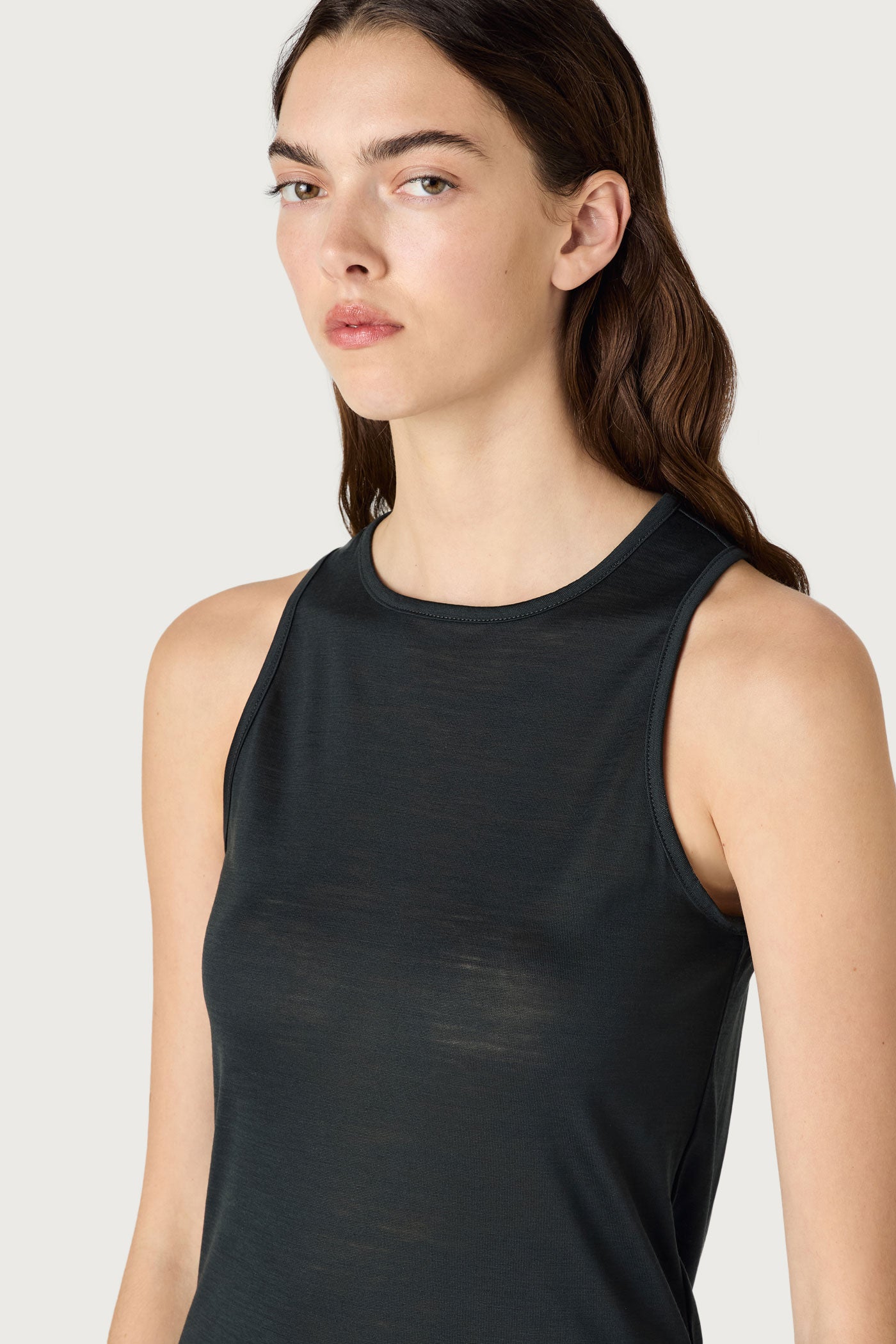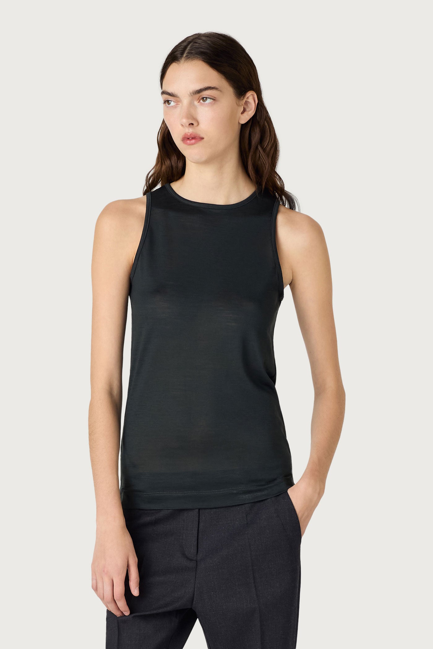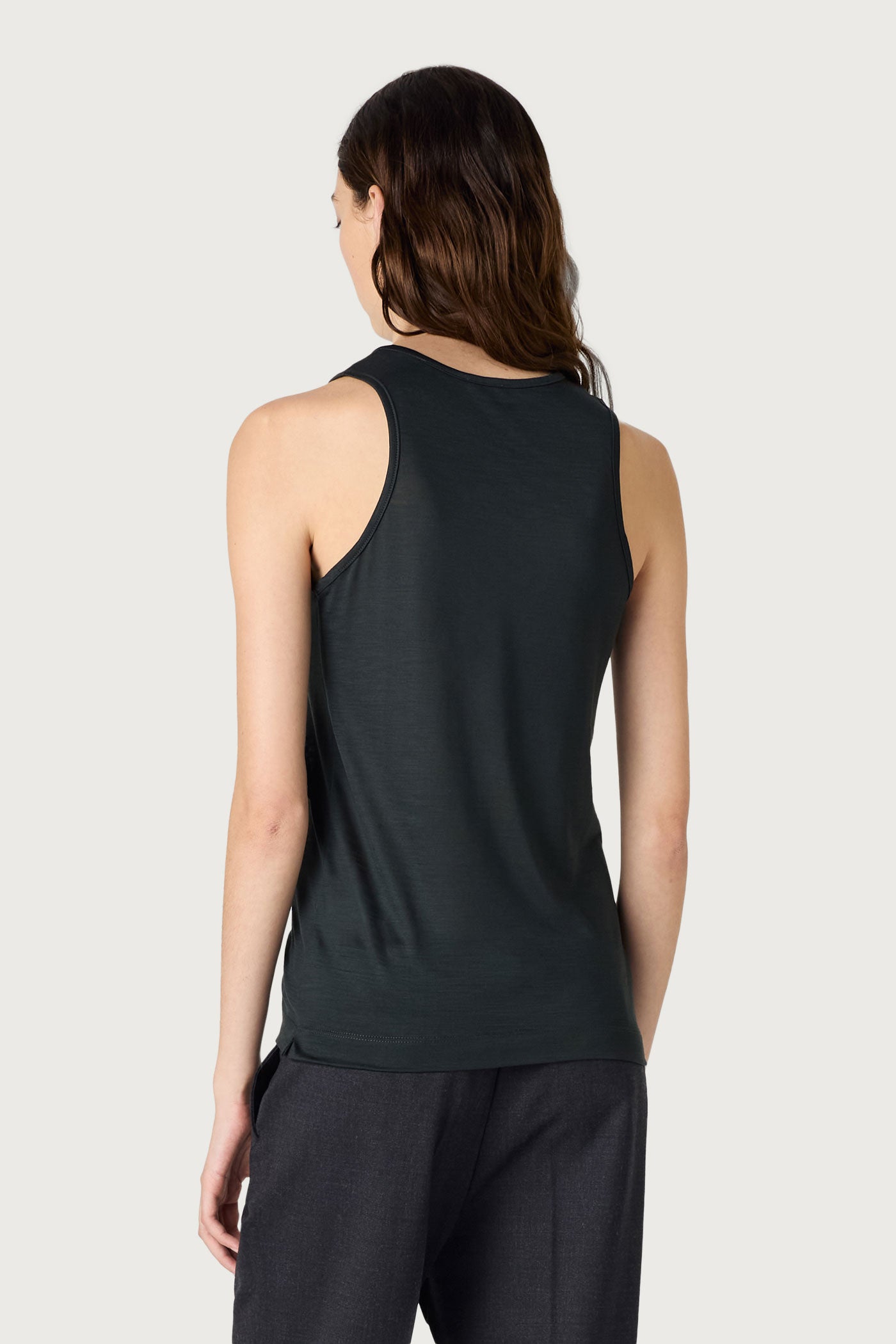 Canotta in jersey di pura lana, con spacchi laterali, fit regolare. Made in Italy.