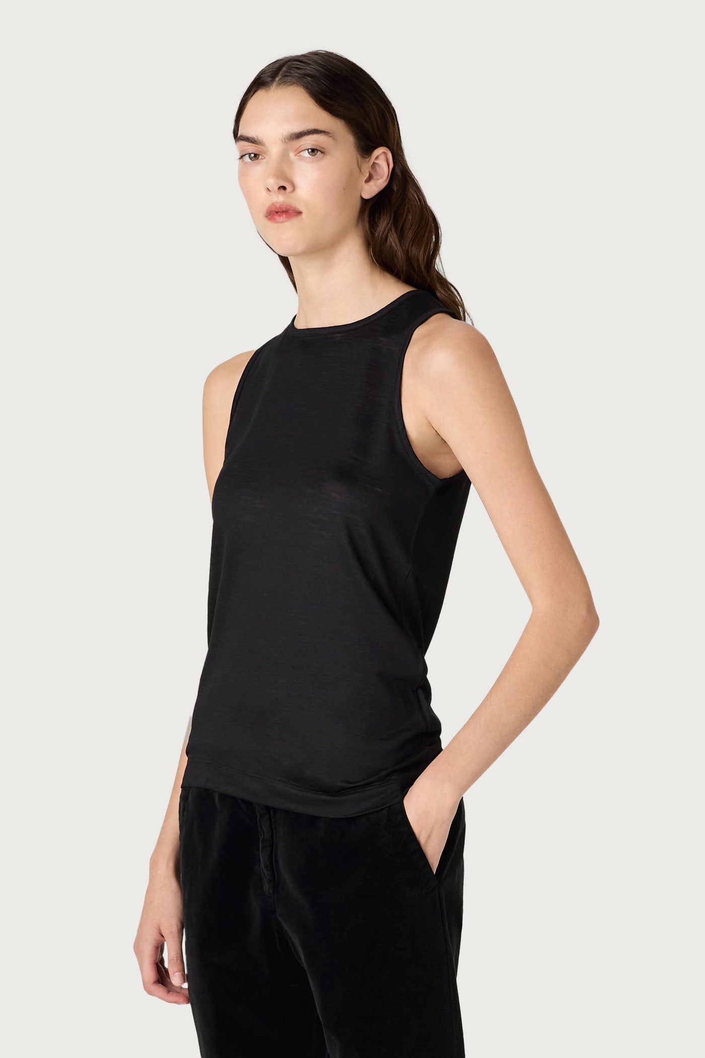Canotta in jersey di pura lana, con spacchi laterali, fit regolare. Made in Italy.
