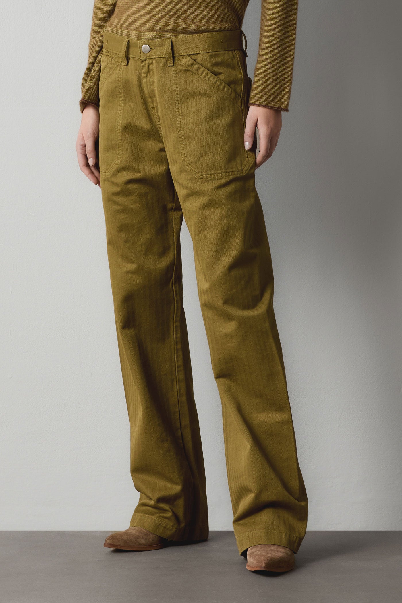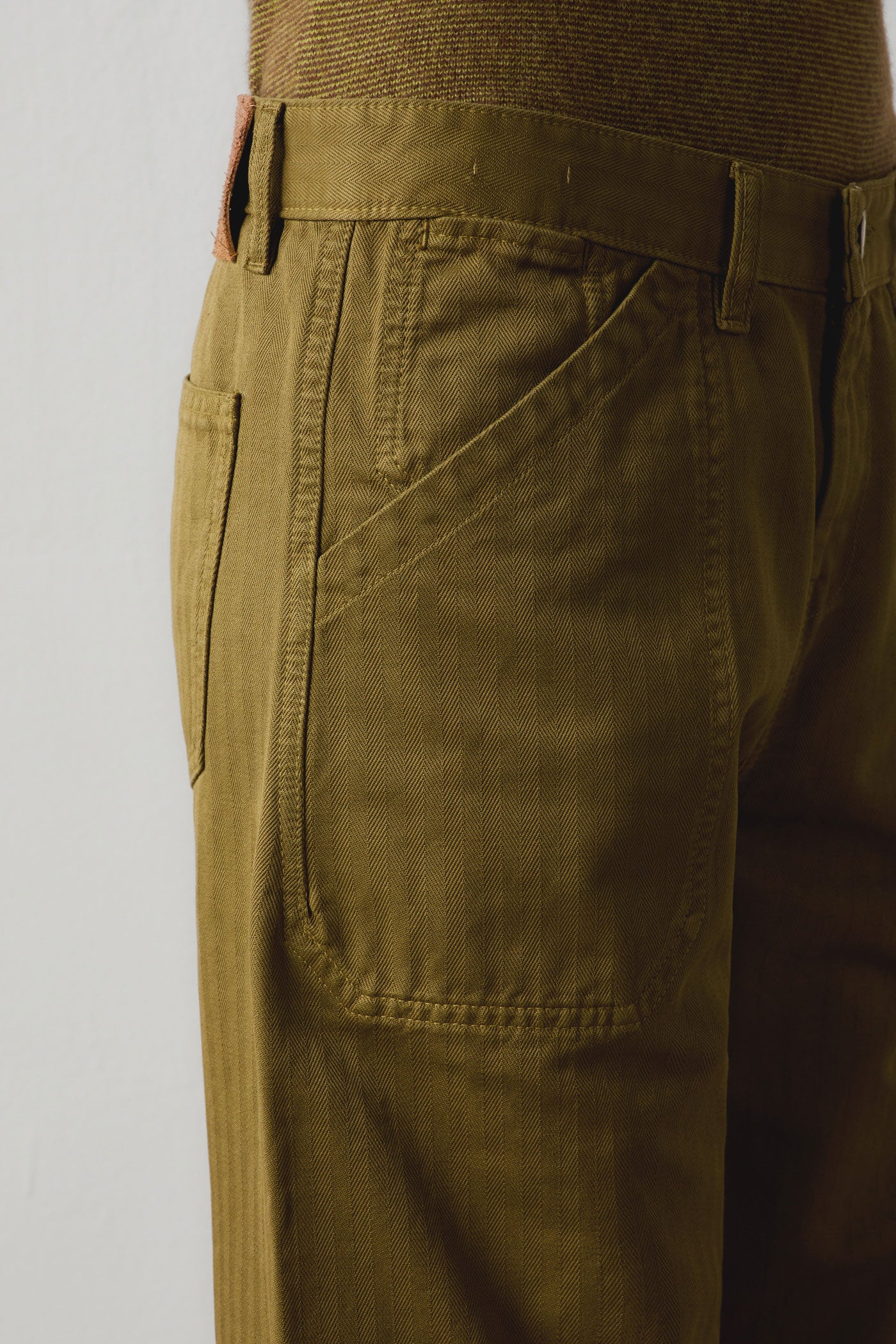 Pantalone a gamba larga con tasche, passanti e caratteristica salpa a pois. Realizzato in cotone a spina di pesce watercolor. Made in Italy.