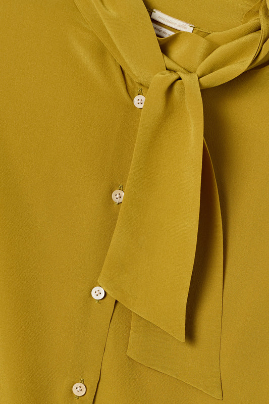 Le camicie si amplificano in volumi over, impreziosite da fiocchi al collo da annodare in un’elegante pussy bow. I tessuti sono leggeri, mossi da stampe che spaziano dal paisley a motivi astratti ispirati alla natura. L’elemento distintivo della stagione si svela sulle giacche in velluto liscio, sulle gonne midi e nelle fodere dei cappotti: una stampa vibrante, un vortice cromatico che spezza la linearità dei neutri e li esalta, con tocchi di colore primario e accenti psichedelici.