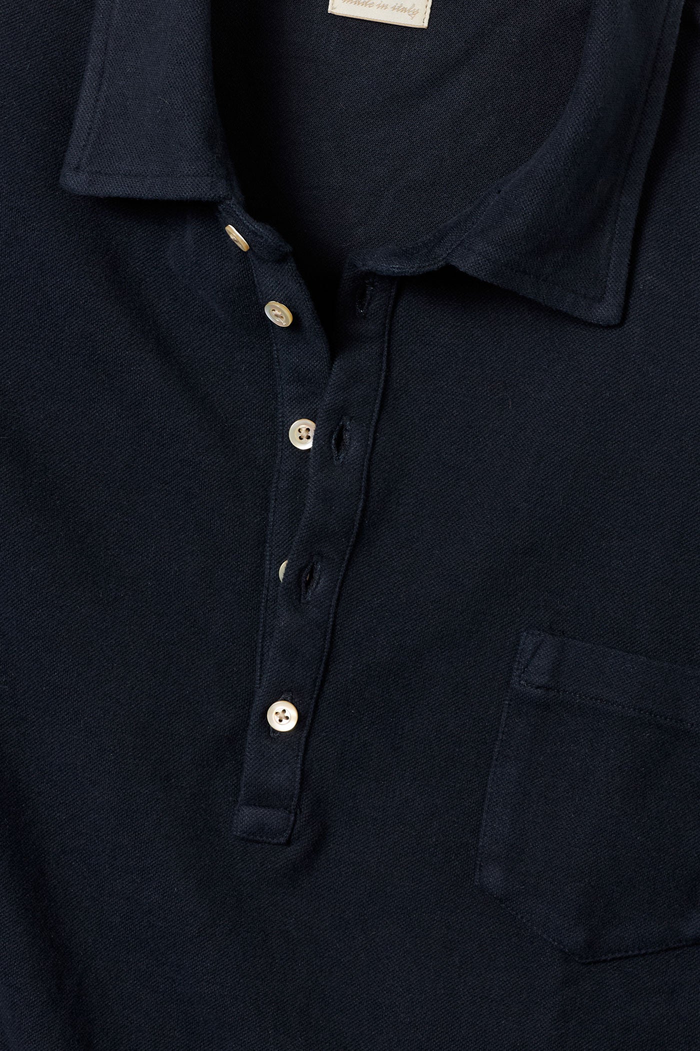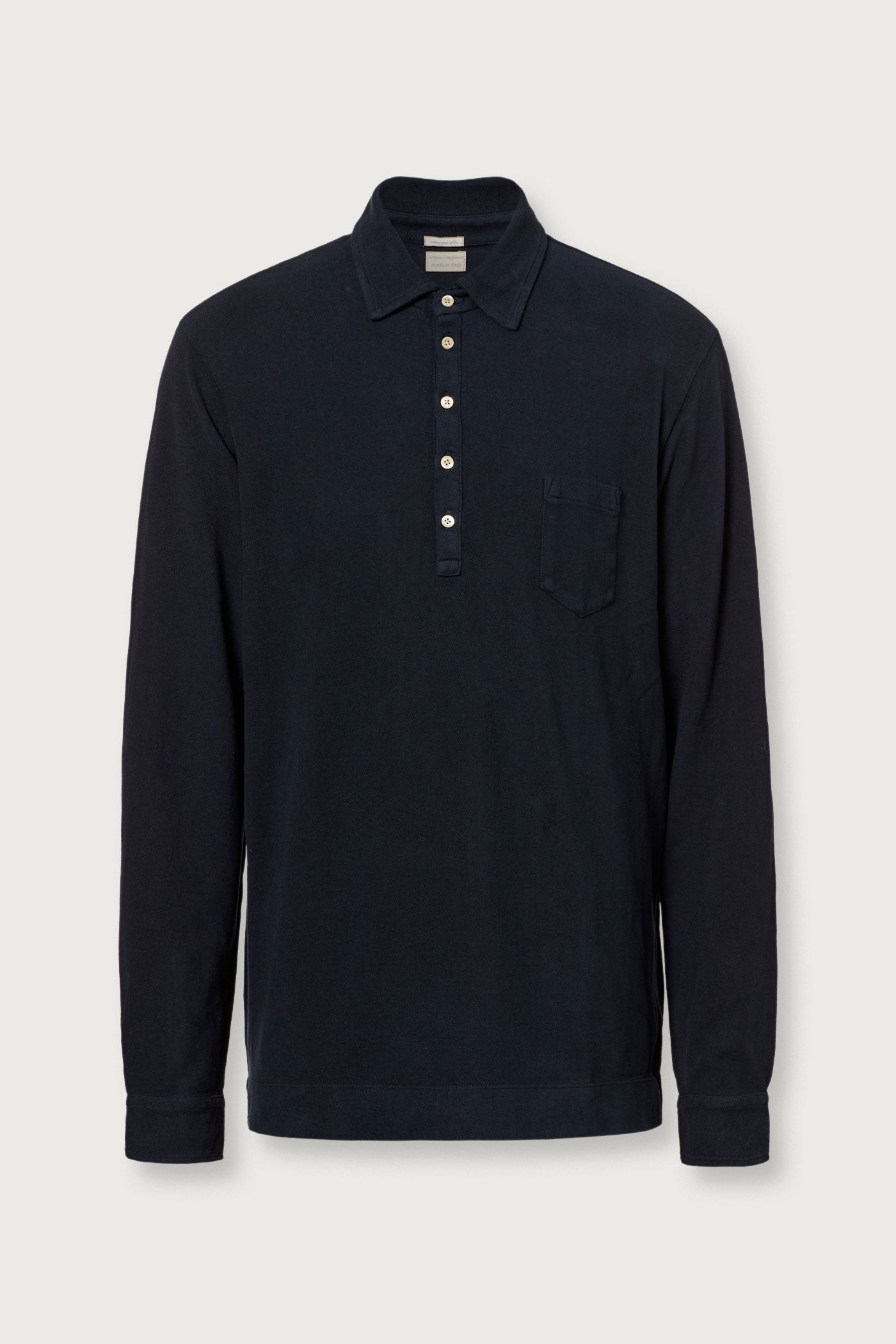 Polo a maniche lunghe a vestibilità regolare con 5 bottoni, realizzata in jersey di cotone cashmere, con taschino sul petto e polsini da camicia. Made in Italy.