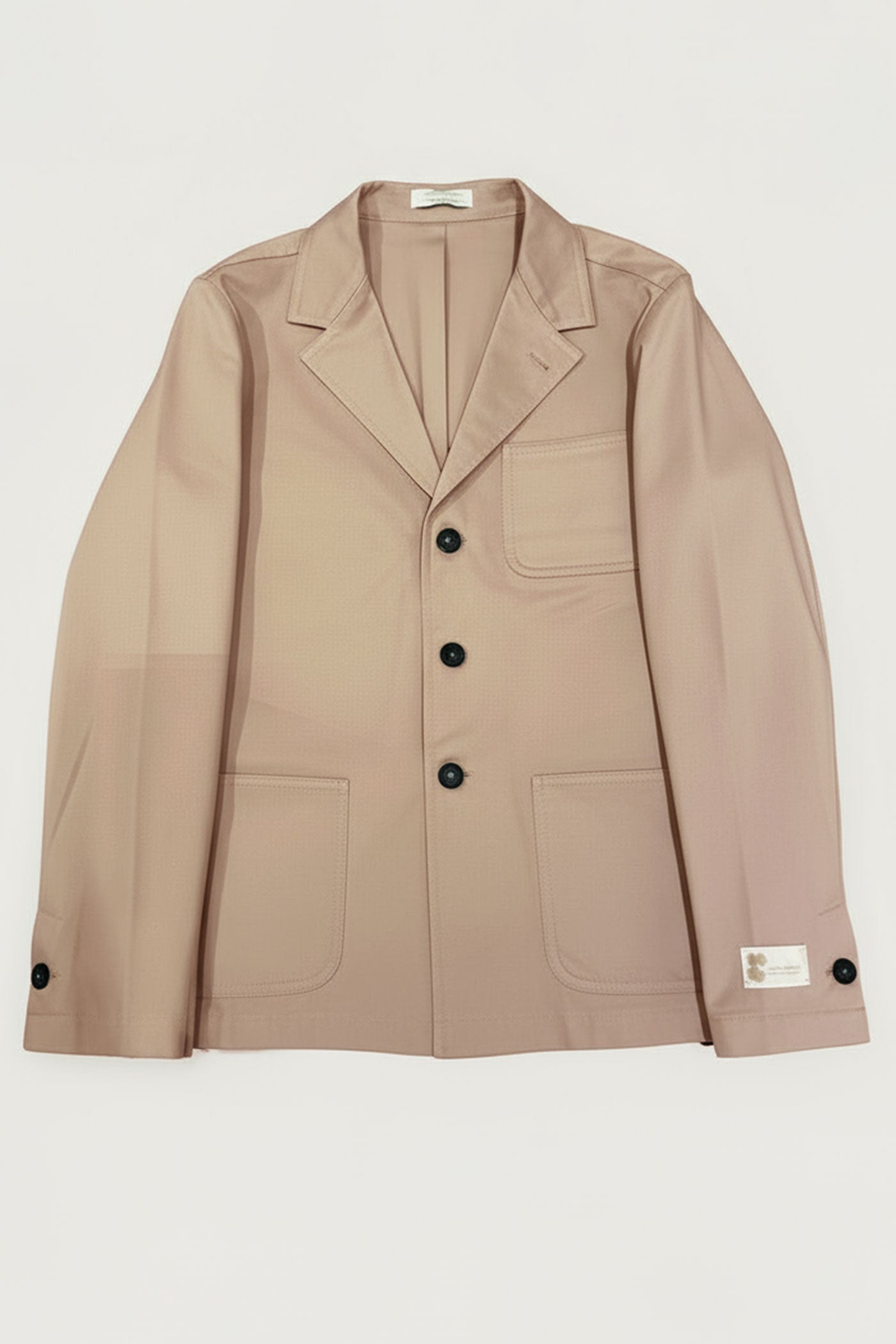 Giacca informale quattro bottoni, con tre tasche a toppa e spacchetti laterali, realizzata in cotone. Made in Italy.