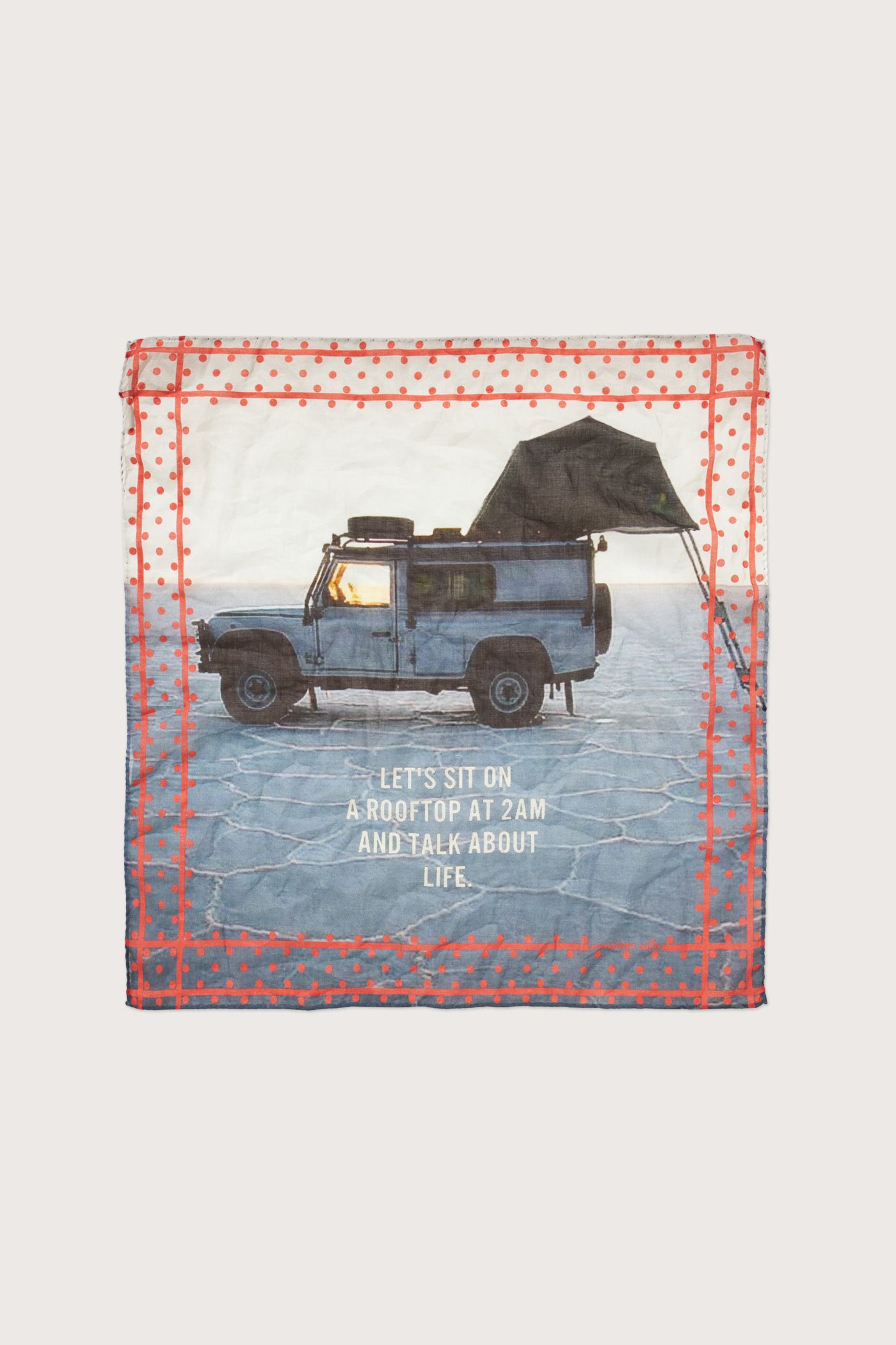 Fazzoletto stampato con immagine e frase in voile di cotone. "Let's sit on a rooftop at 2am and talk about life"