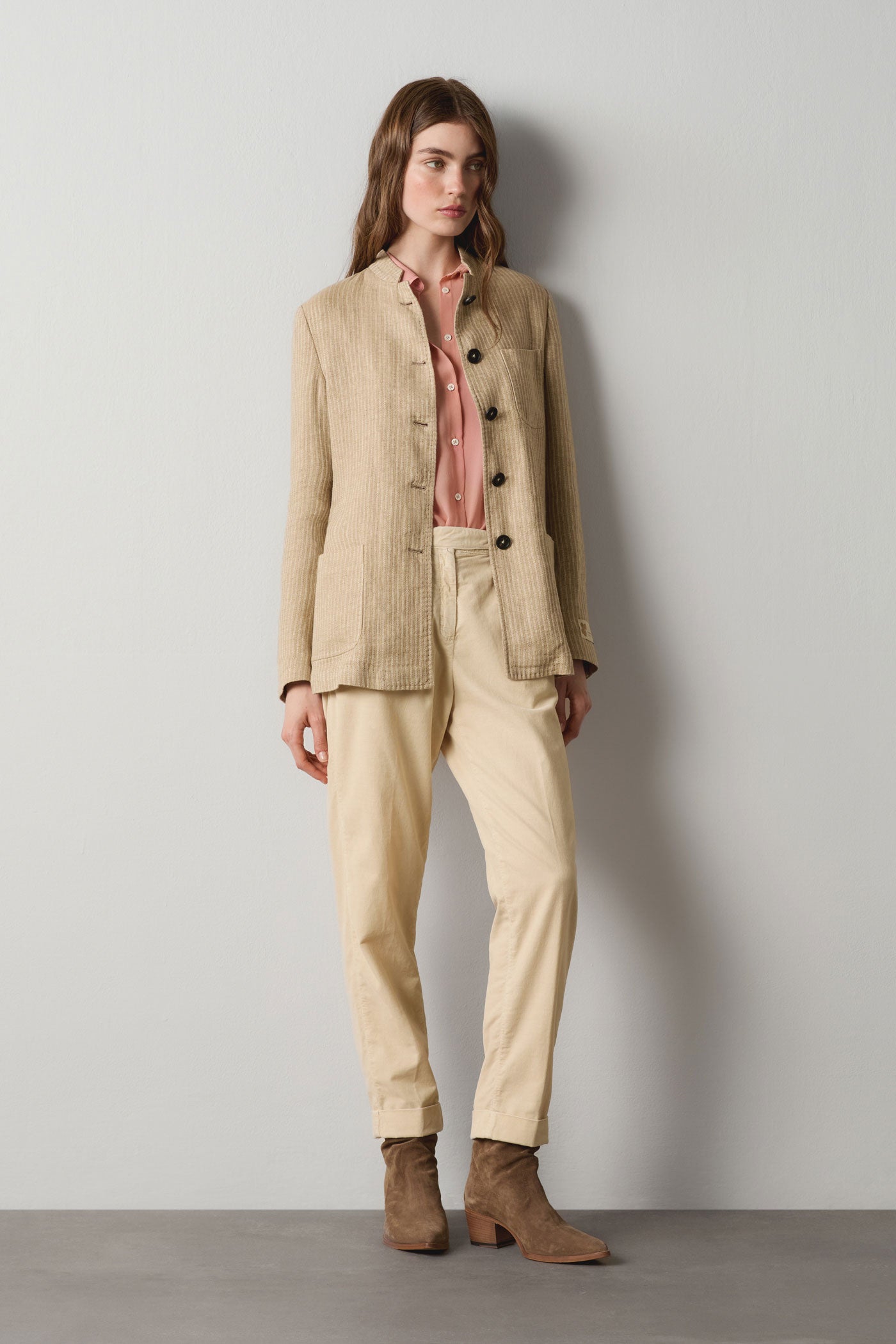 Camicia a vestibilità morbida con colletto a punta, carré posteriore e senza cannoncino frontale. Realizzata in seta crêpe de chine. Made in Italy.