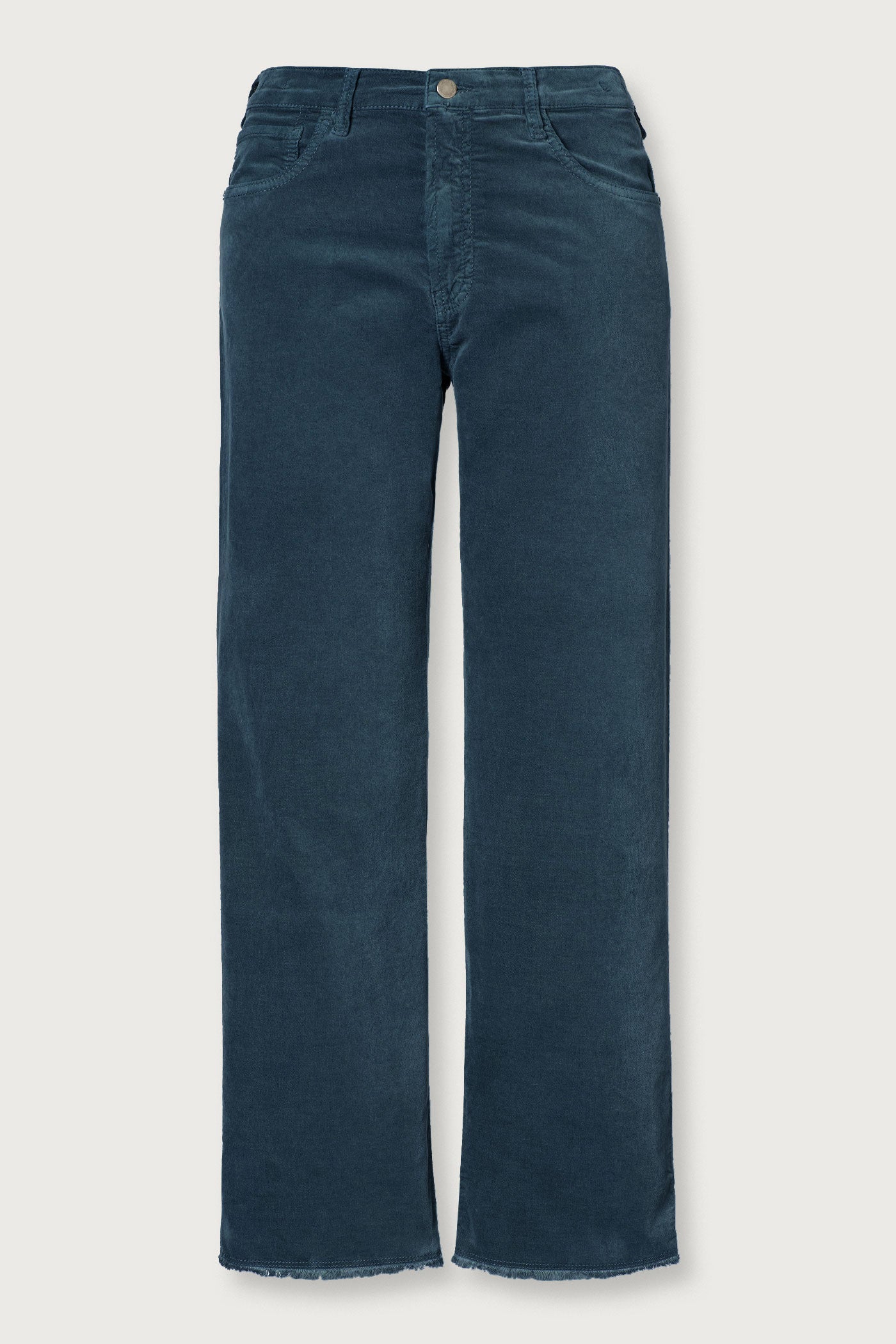 Five-pocket trousers with a straight leg and raw-cut hem, offering a relaxed fit. Zip and button closure. Crafted from stretch cotton velvet. Made in Italy.