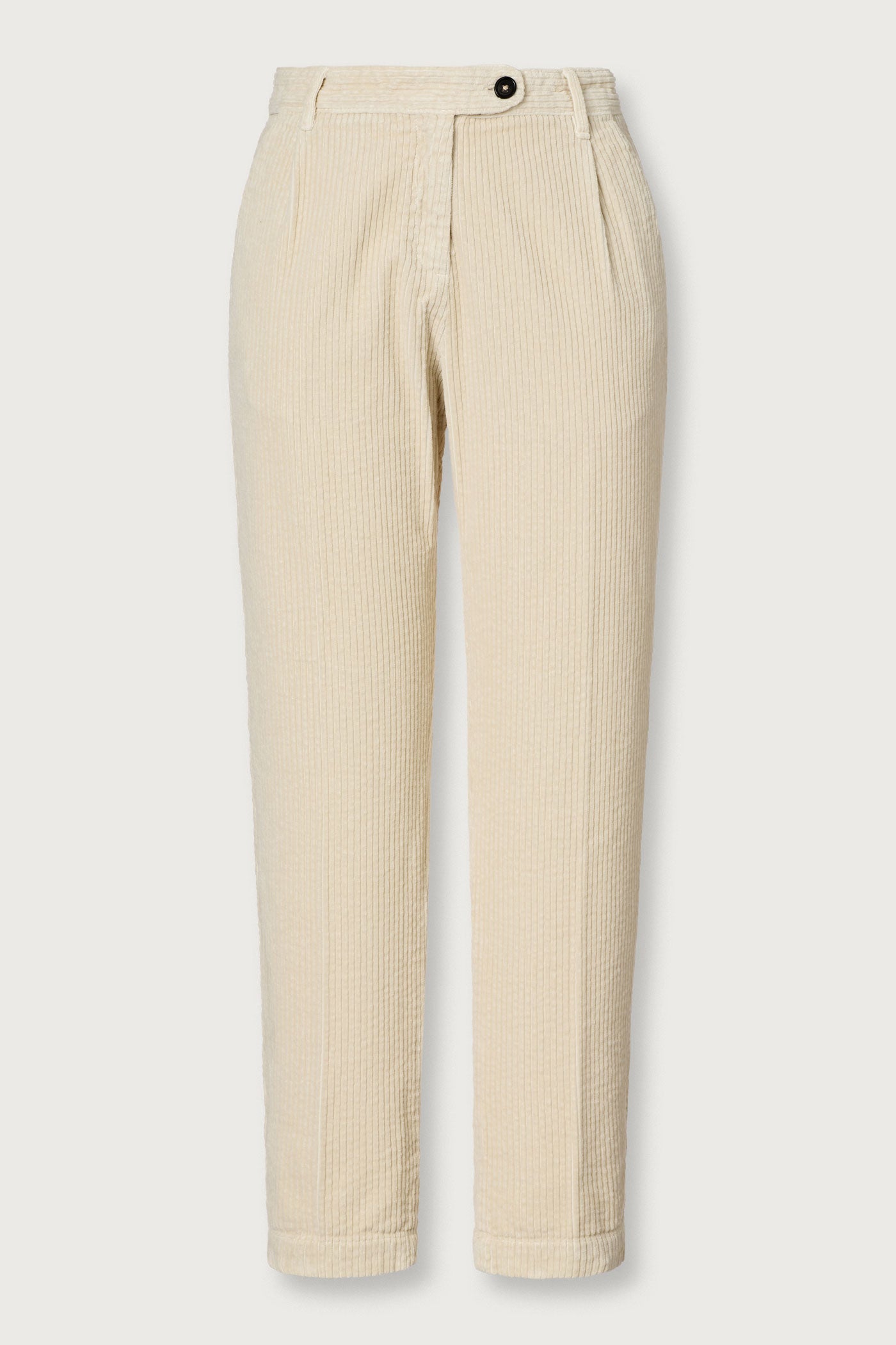 Mid-rise trousers with a relaxed fit, front pleat and a slightly tapered leg. Zip and button closure. Crafted from pure cotton corduroy. Made in Italy.