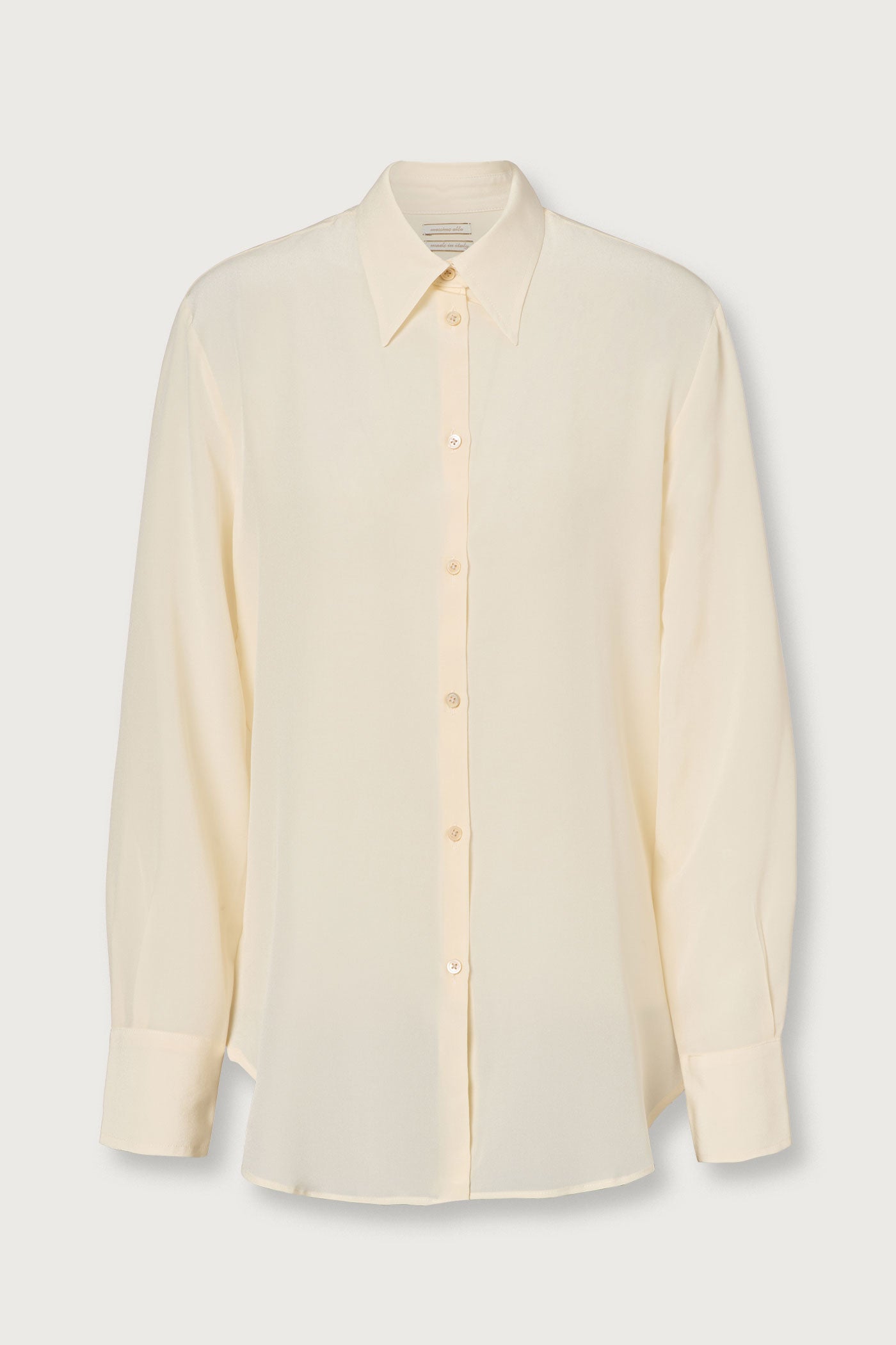 Relaxed-fit shirt with pointed collar, back yoke and no front placket. Crafted from silk voile. Made in Italy.
