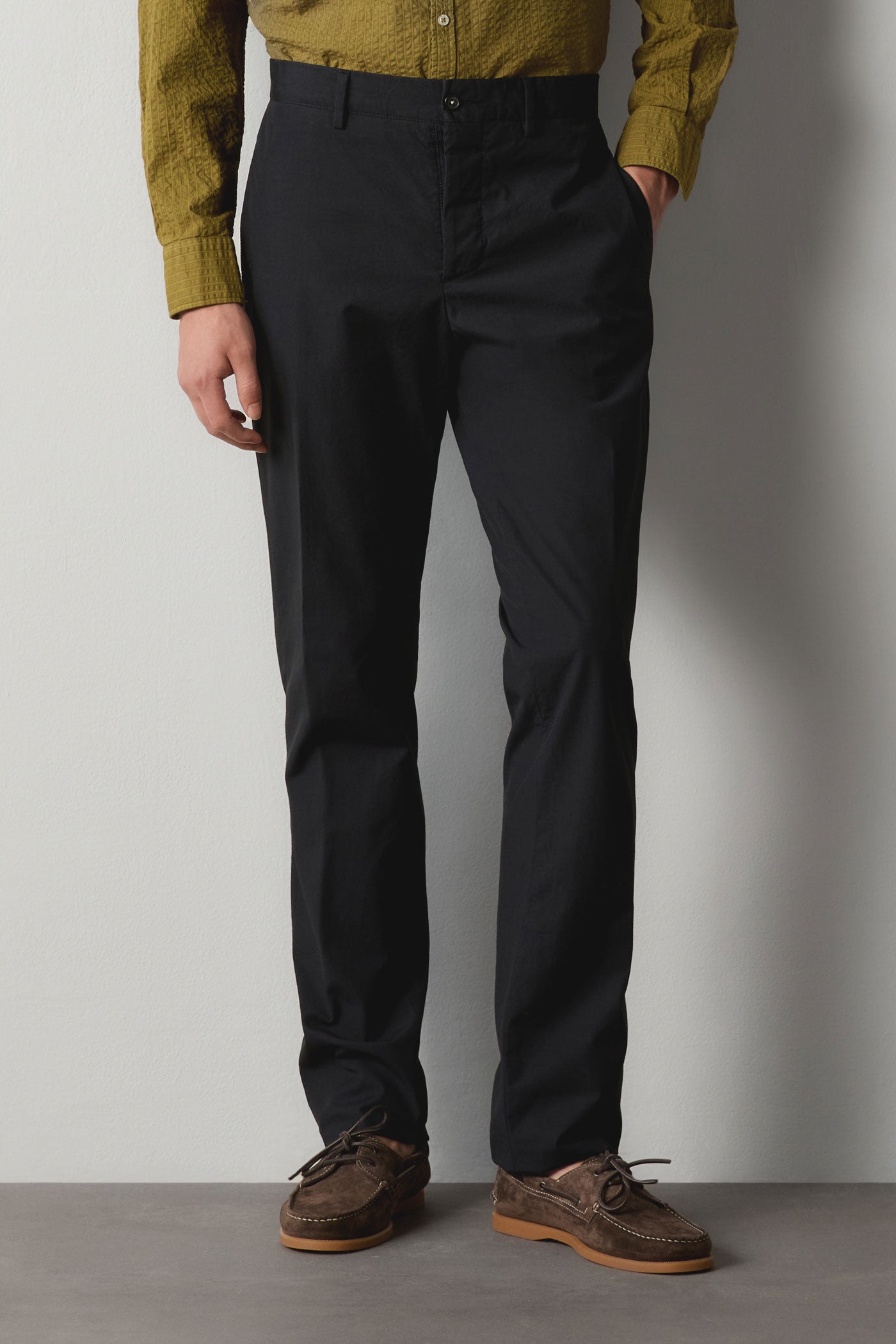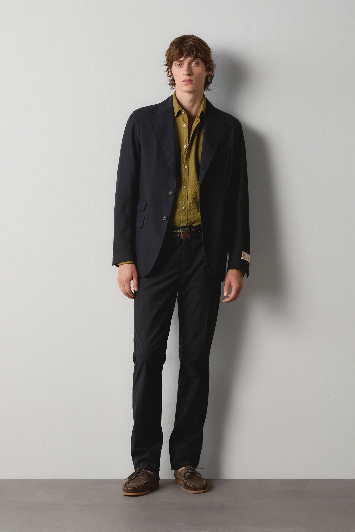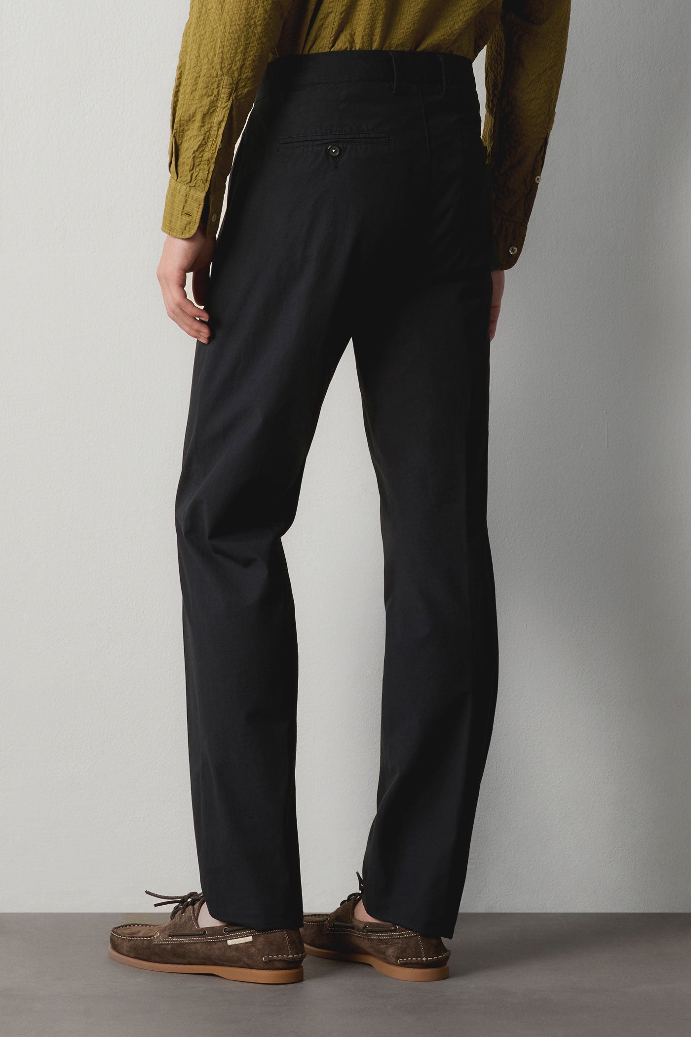 Regular-fit suit featuring a single-breasted jacket with a notch lapel, flap and ticket pockets, and a double back vent. Paired with regular/slim-fit flat-front trousers with button closure, rear fillet pockets with button detailing, and a straight leg, finished with an unfinished hem designed to be tailored to the wearer’s height. Crafted from Piave cotton with horn buttons. Made in Italy.