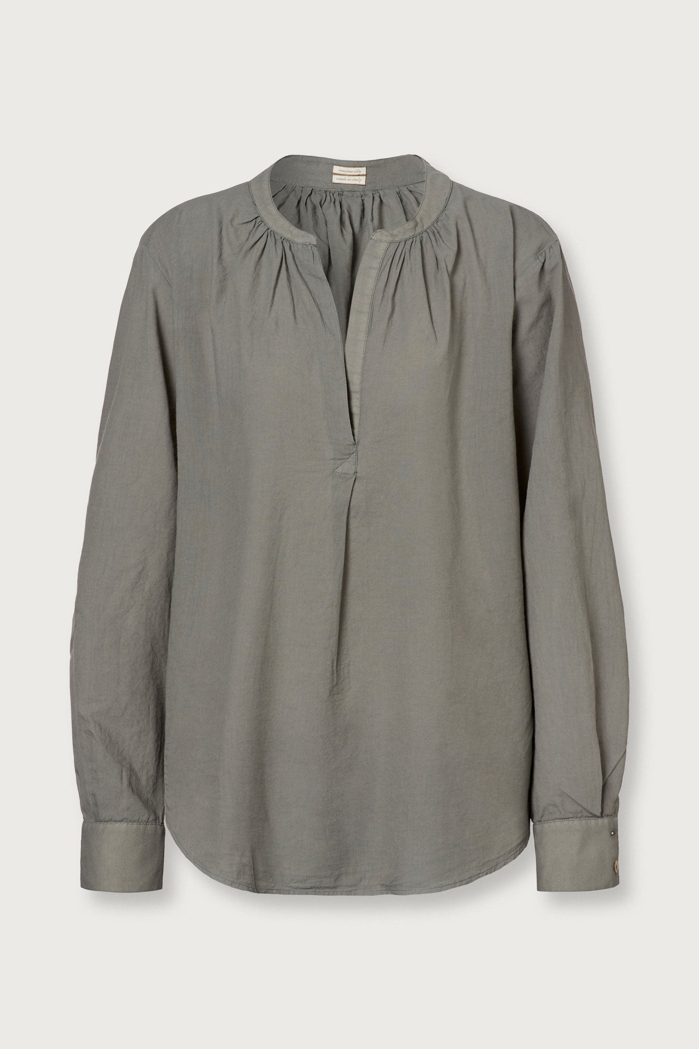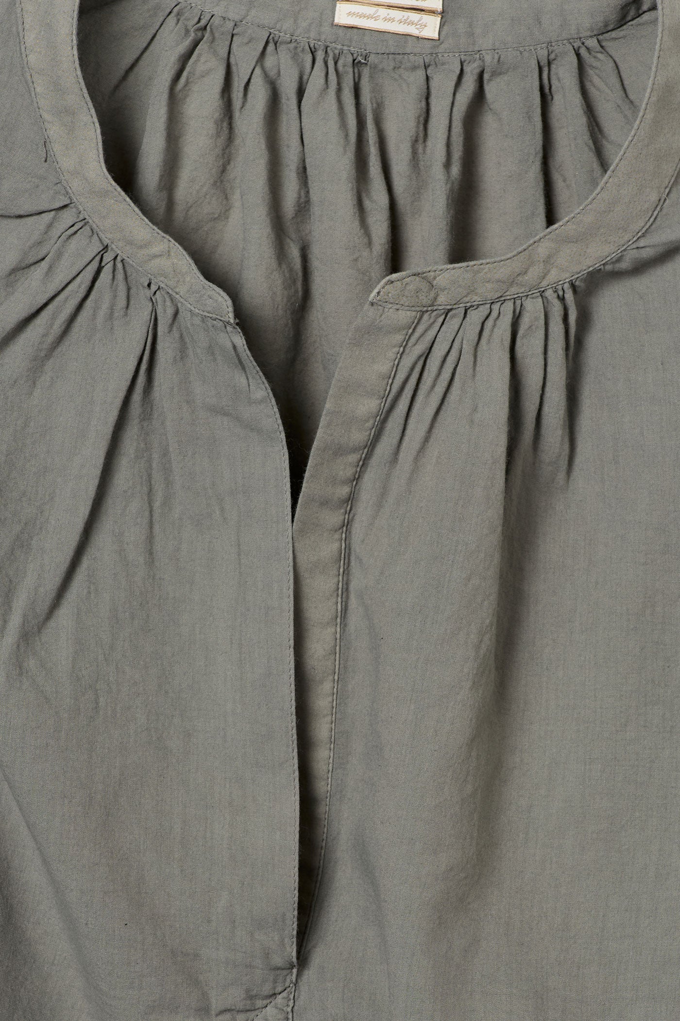 Blouse with mandarin collar, deep opening and high cuffs. Crafted from cotton-cashmere with a watercolor effect. Made in Italy.